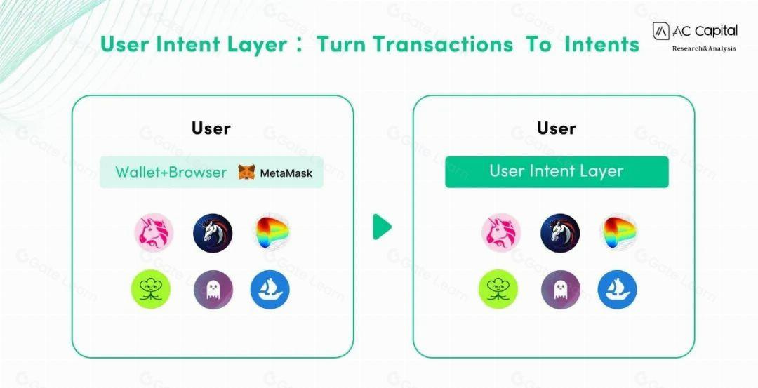 Currently, users are using Uniswap to exchange tokens A and B. However, with intent-based transactions, users only need to express their intent to swap A for B at the lowest cost possible, and an appropriate protocol will be automatically selected to execute the transaction.