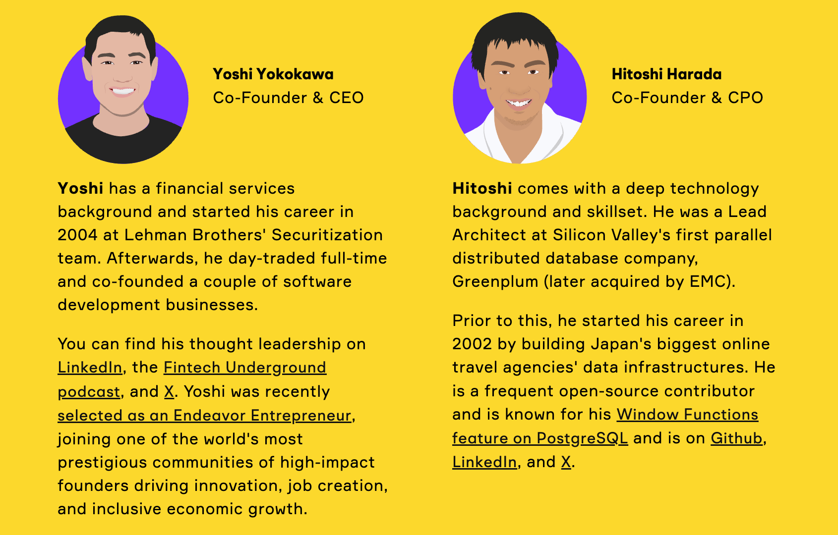 Alpaca’s founders are Yoshi Yokokawa (CEO) and Hitoshi Harada (CPO), both entrepreneurs from Japan.