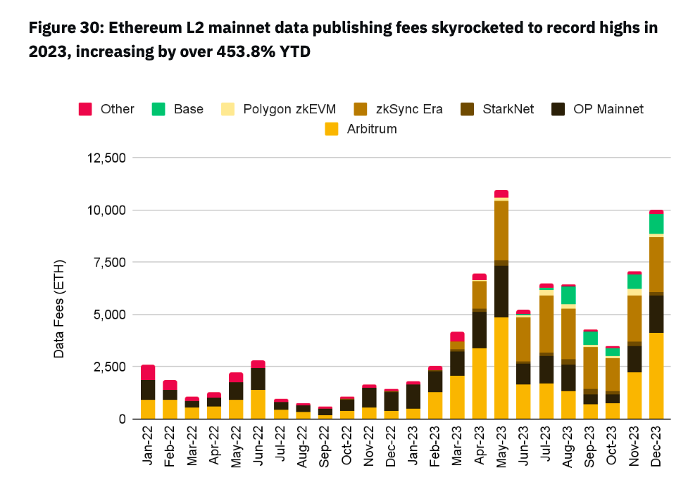 Furthermore, the fees paid when committing data from L2 to ETH have recorded a dramatic increase of 453.8% annually.