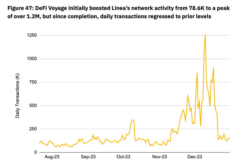 Additionally, in 2023, L2s with native yields such as Blast and Manta Network have energized the market, but it is uncertain whether this trend will continue.