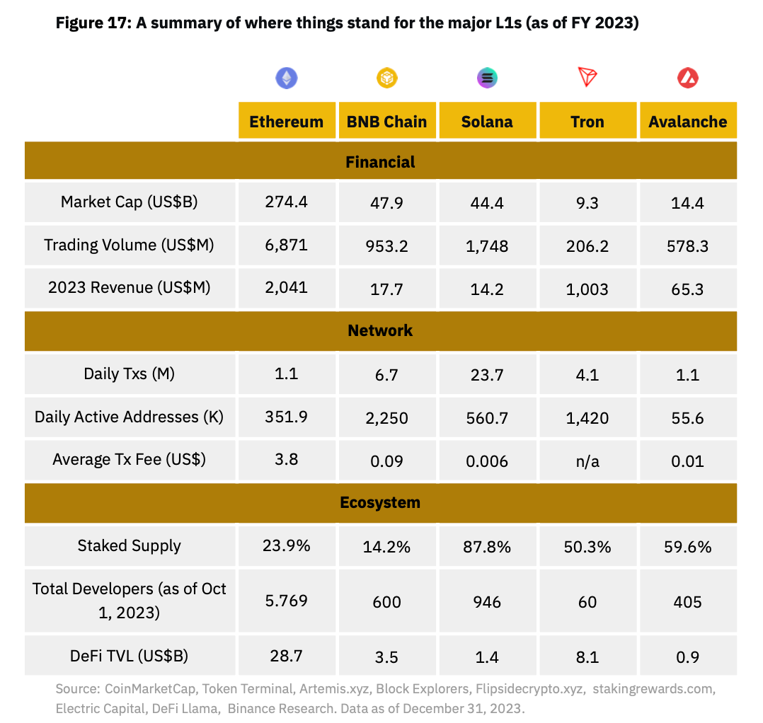 In 2023, BNB announced BNB Greenfield, the next-generation data storage platform, as well as opBNB, an Optimistic L2 BNB chain based on the OP stack, contributing to the continuous growth of its ecosystem. The DeFi sector remained strong.