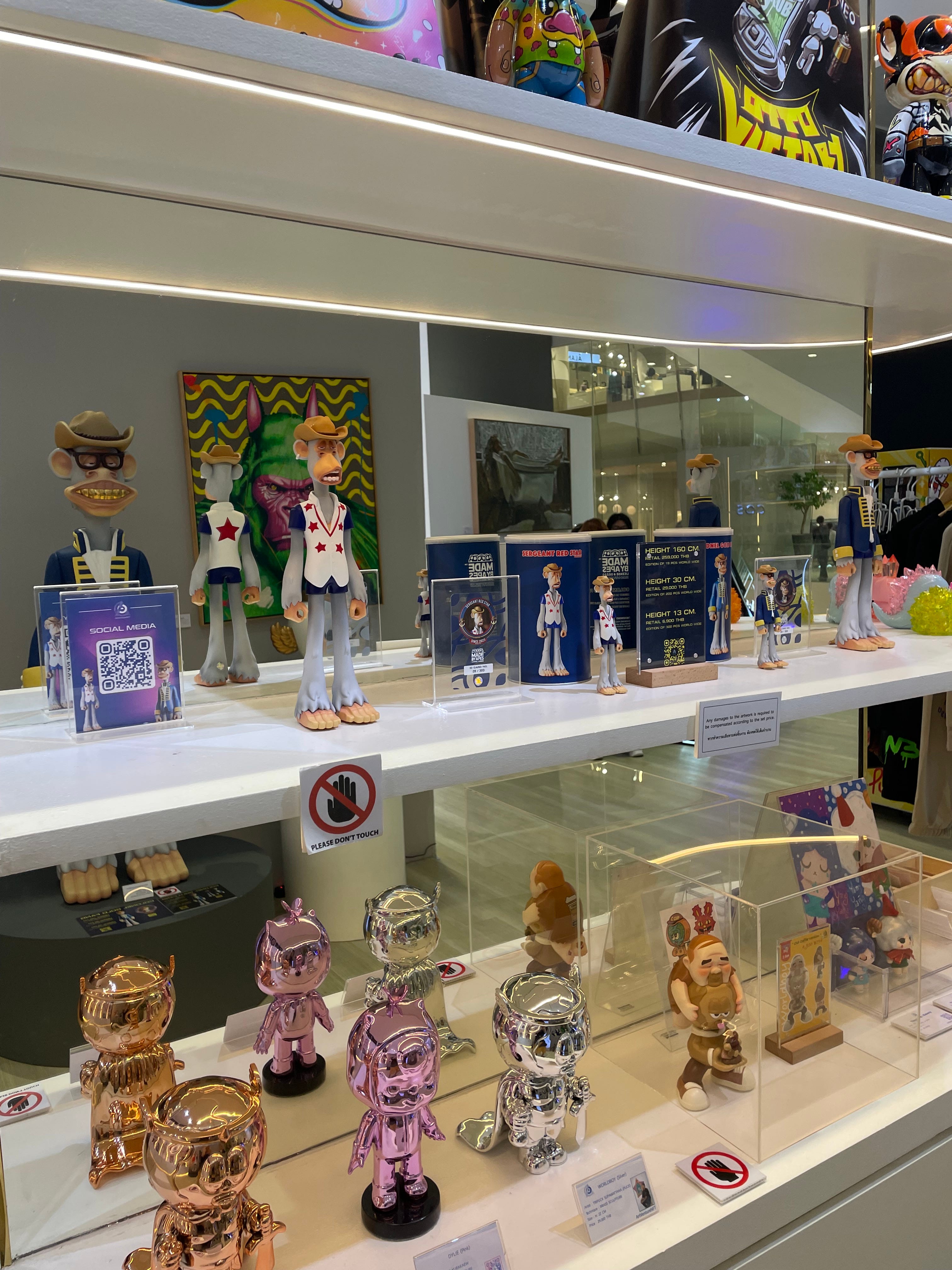 There was an art NFT booth in one corner of the shopping mall (I bought a T-shirt as they were selling BAYC figures and T-shirts. They said it was produced under the license of BAYC).