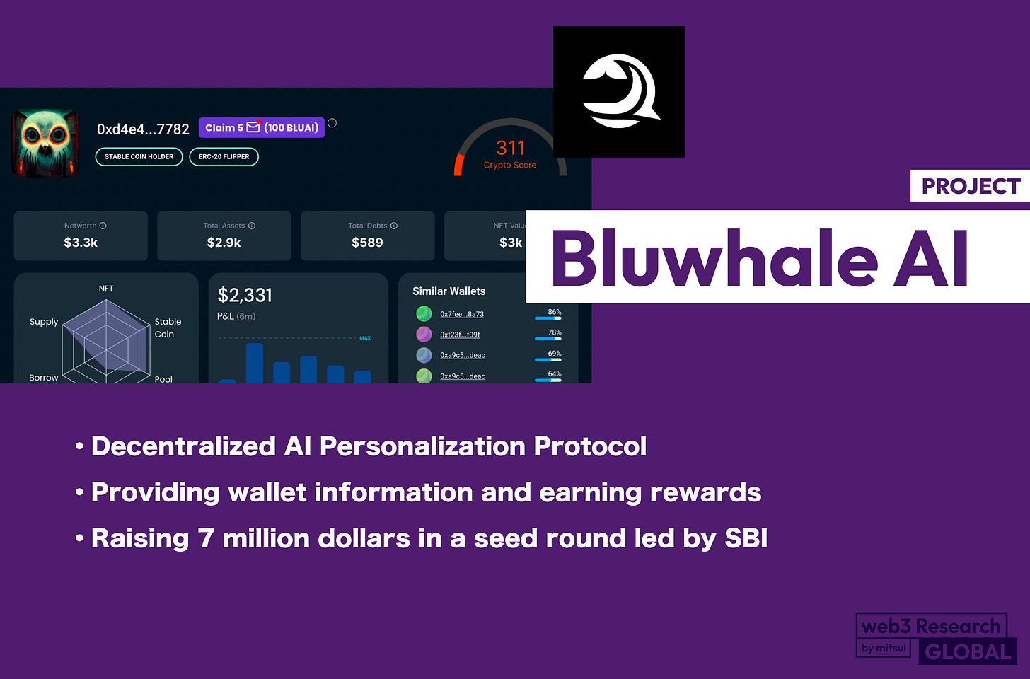 【Bluwhale AI】Decentralized AI Personalization Protocol / Providing wallet information and earning rewards / Raising 7 million dollars in a seed round led by SBI / @bluwhaleai