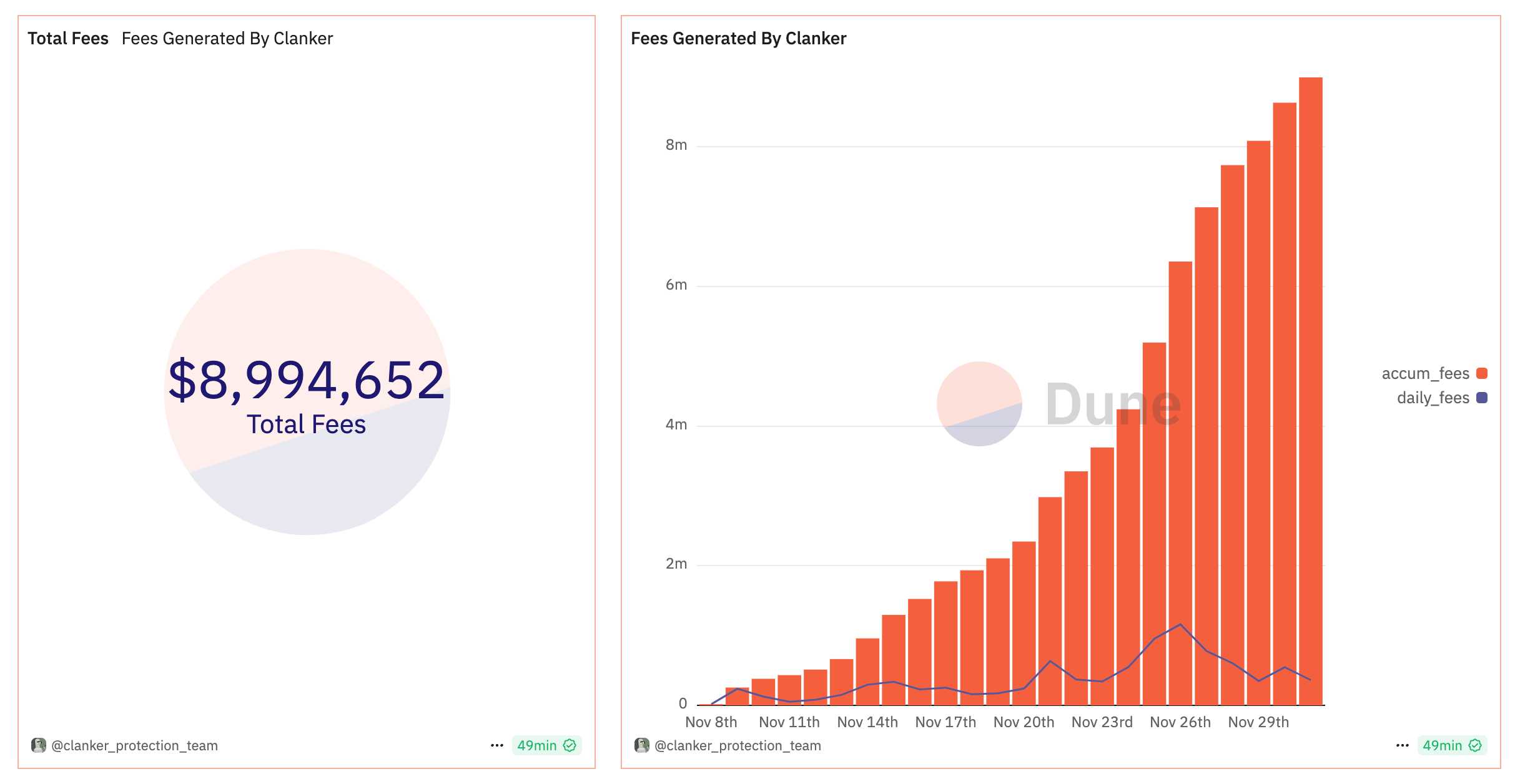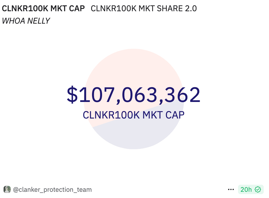 In addition, the market cap for the top 100 Clanker-issued issues exceeds $100 million.
