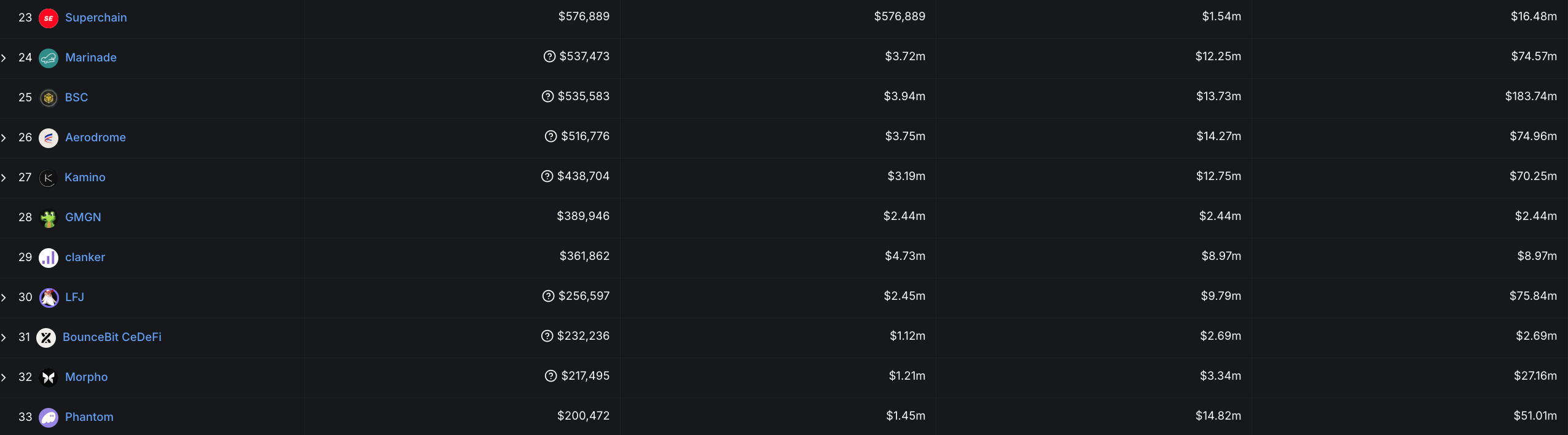 This ranks 29th among all protocols, including blockchain; Pump fun ranks 8th, but is second only to it on the meme coin platform.