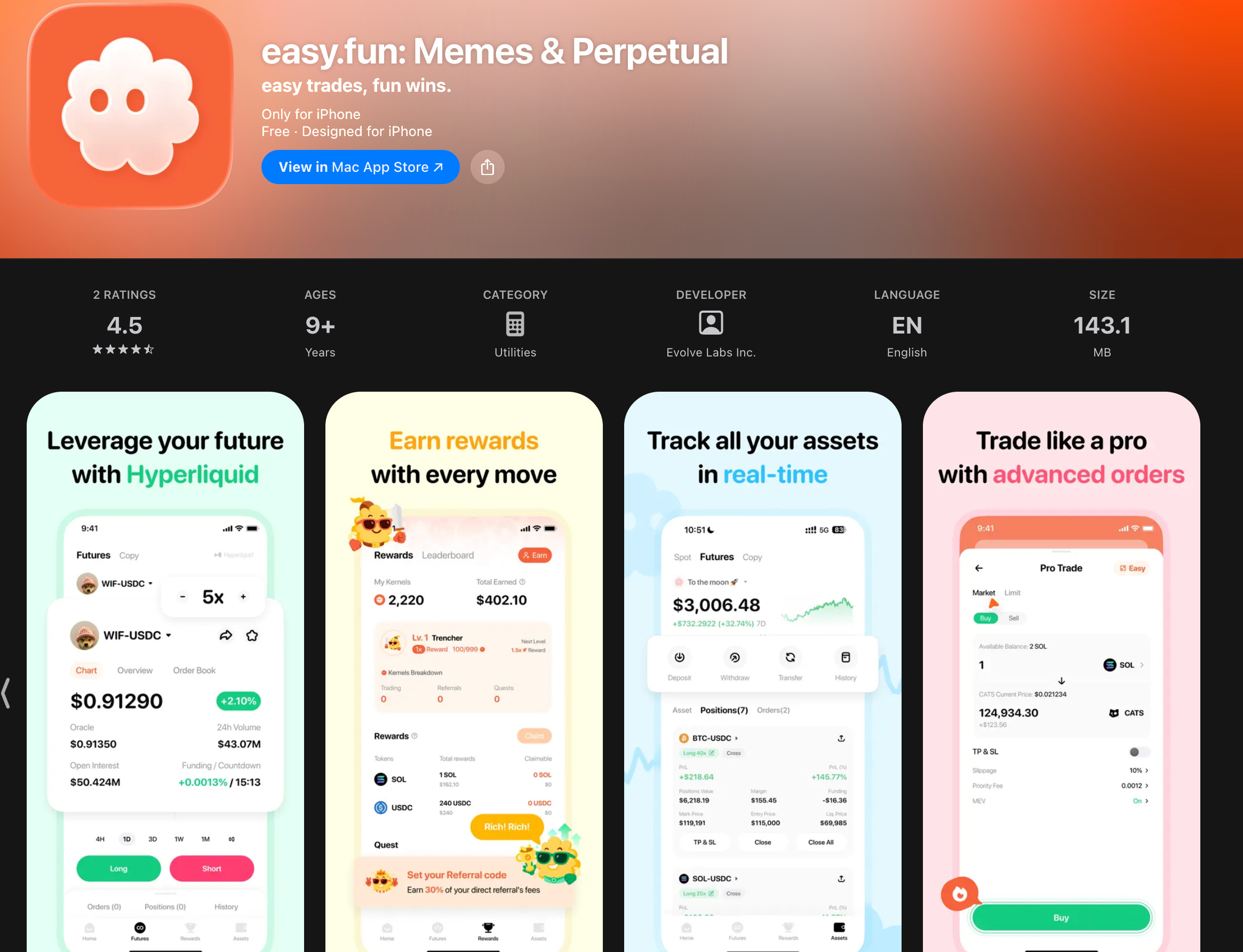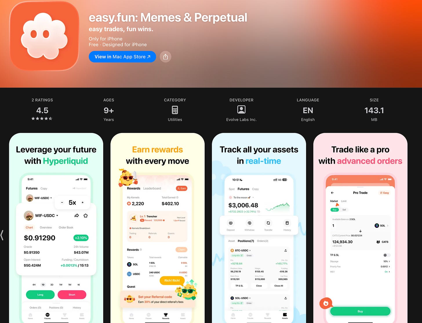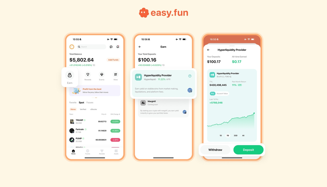 “easy.fun” is an on-chain cryptocurrency trading platform built on Solana and Hyperliquid.