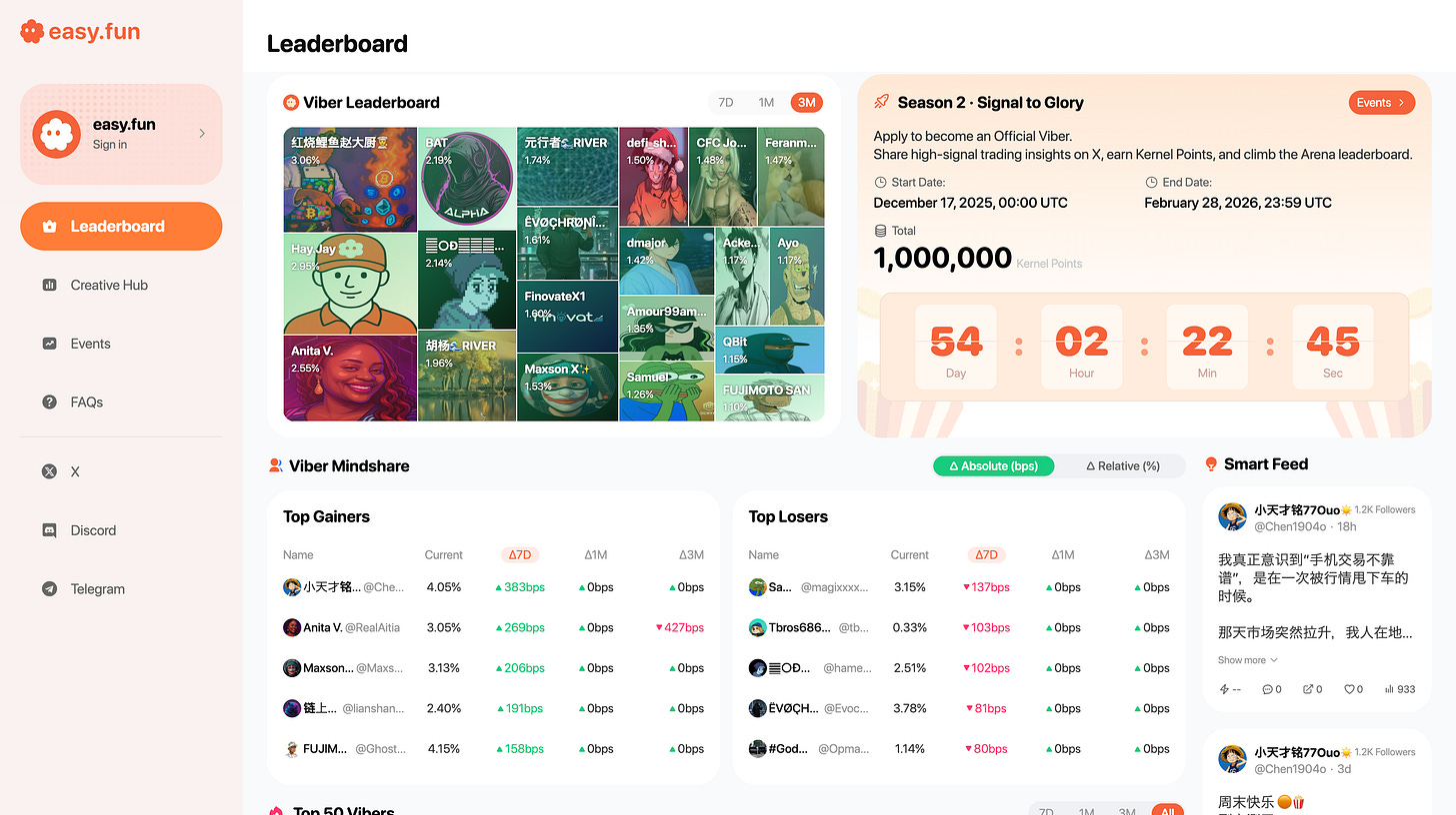 Its most distinctive feature lies in gamifying and socializing trading, learning, and information sharing around the “Trading Arena”—where users compete for trading performance and rankings—and Kernel Points.