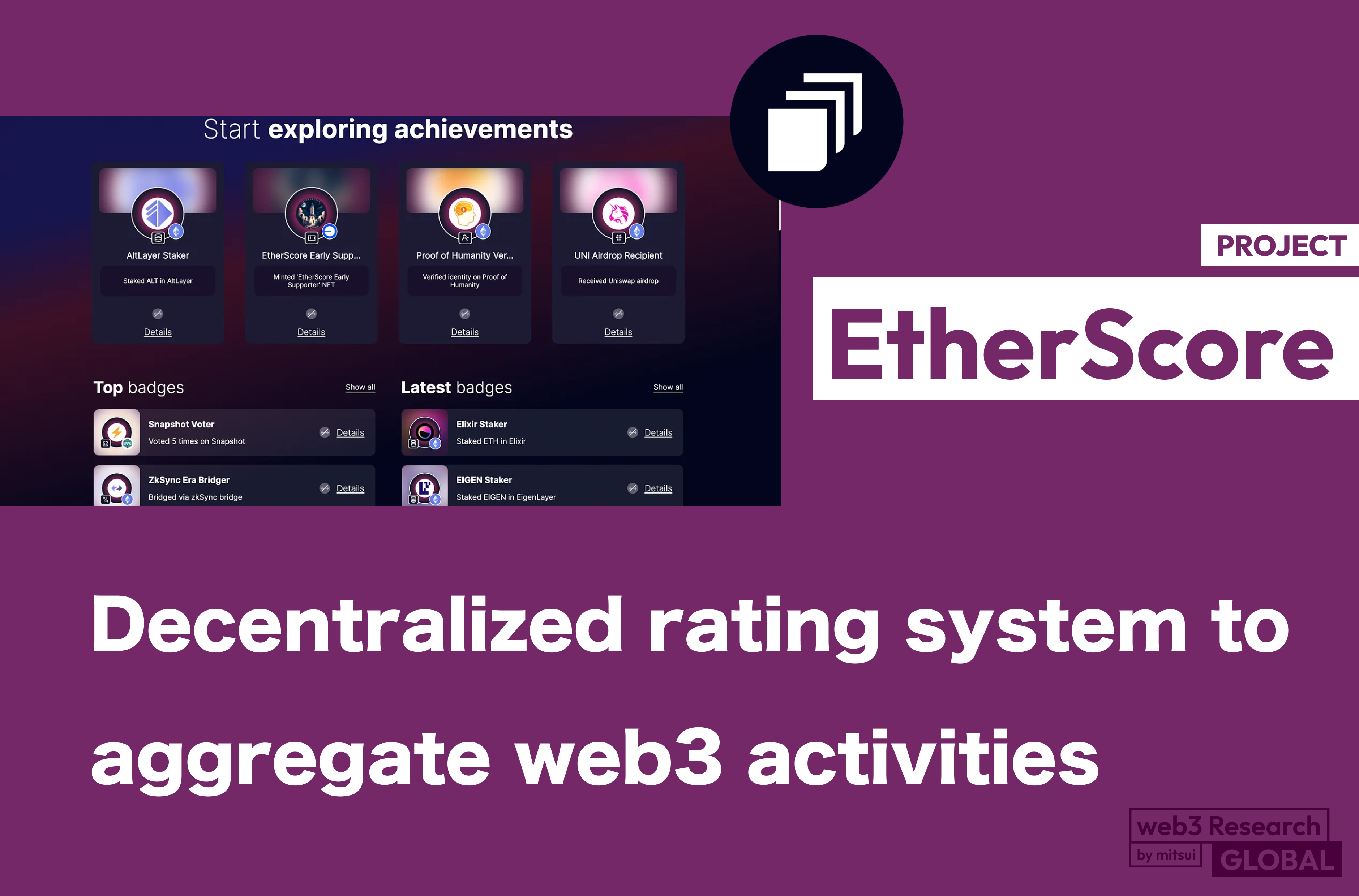 【EtherScore】Decentralized rating system to aggregate web3 activities / Distribute on-chain activities as badges and create profiles / @EtherScore
