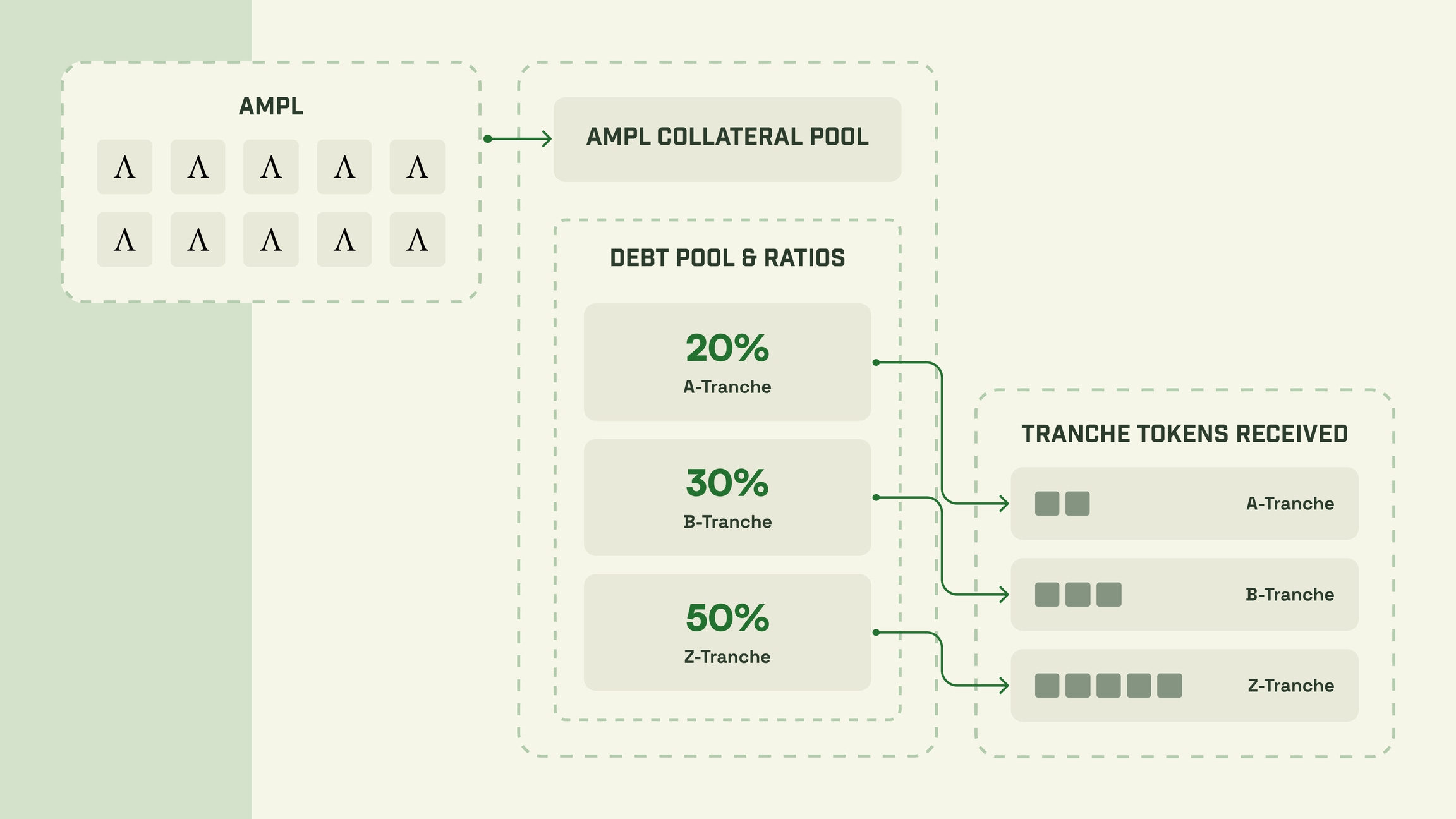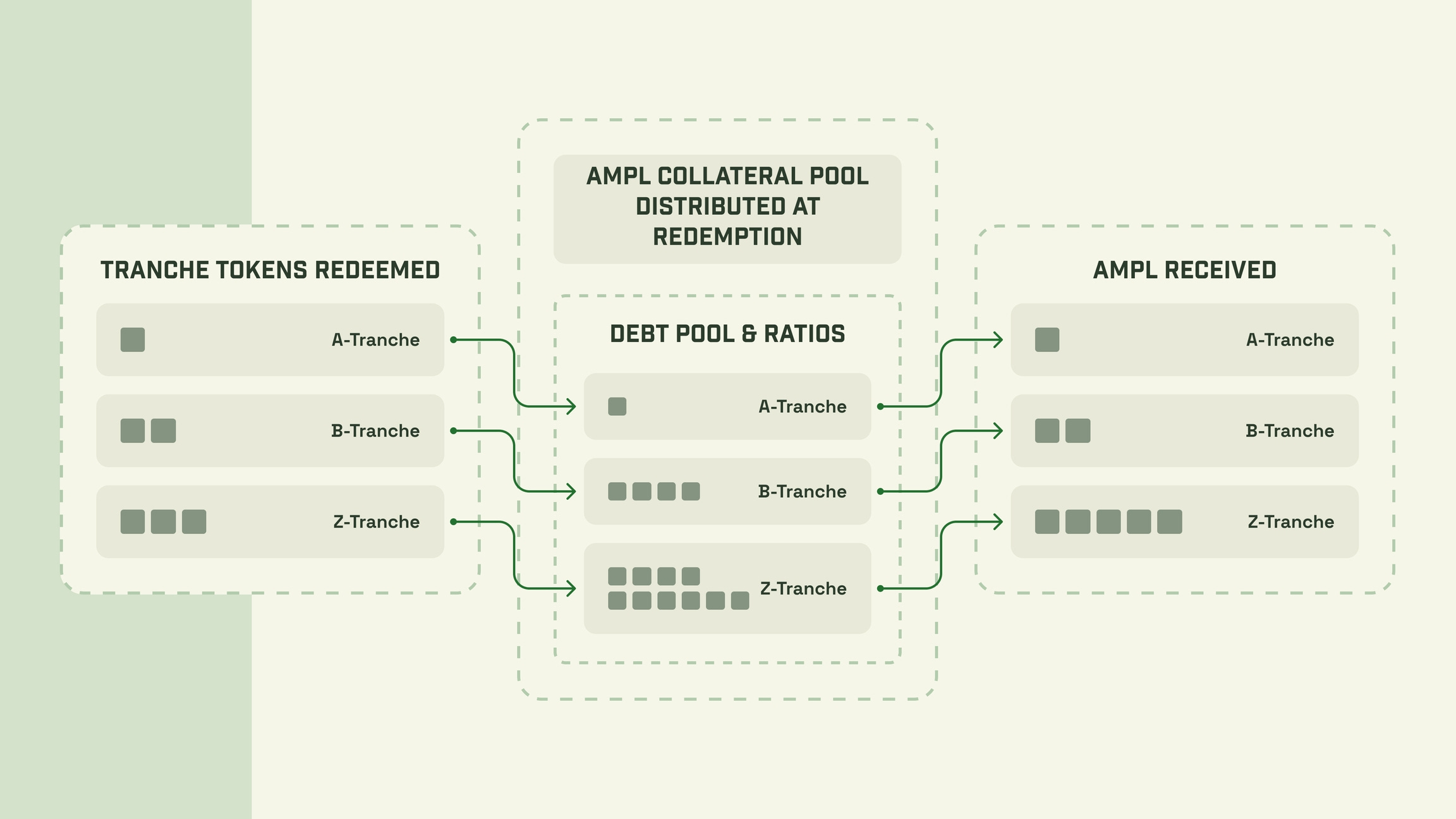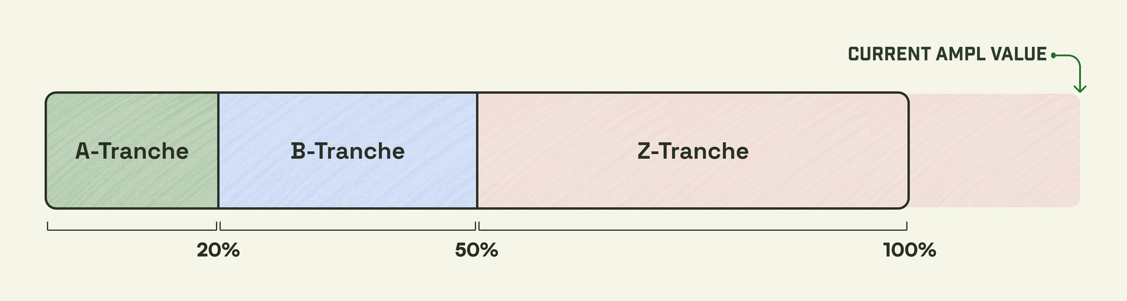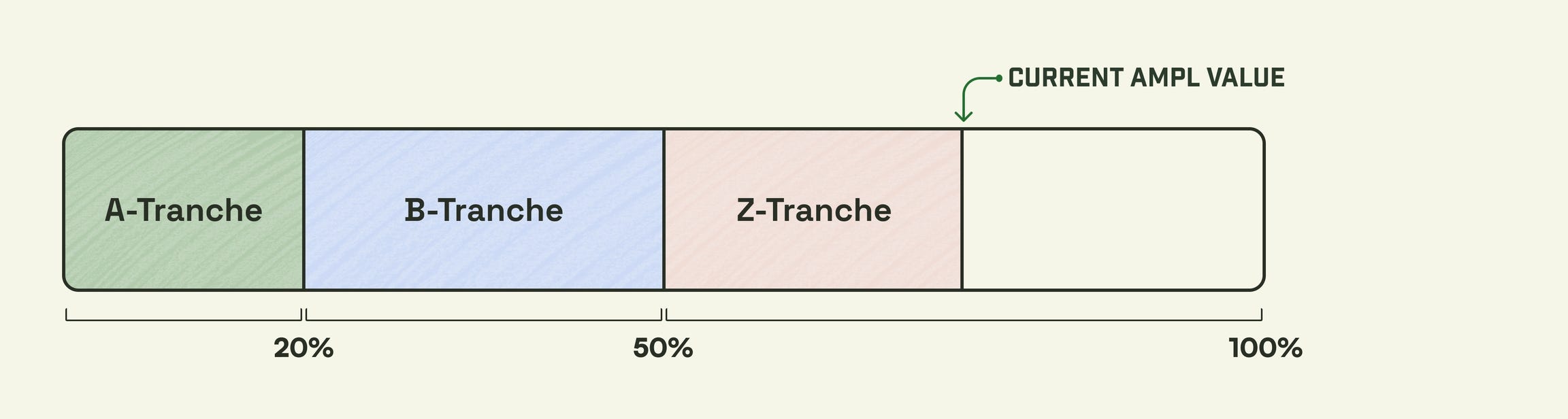 A tranche will be repaid in full 1 AMPL for each A tranche.