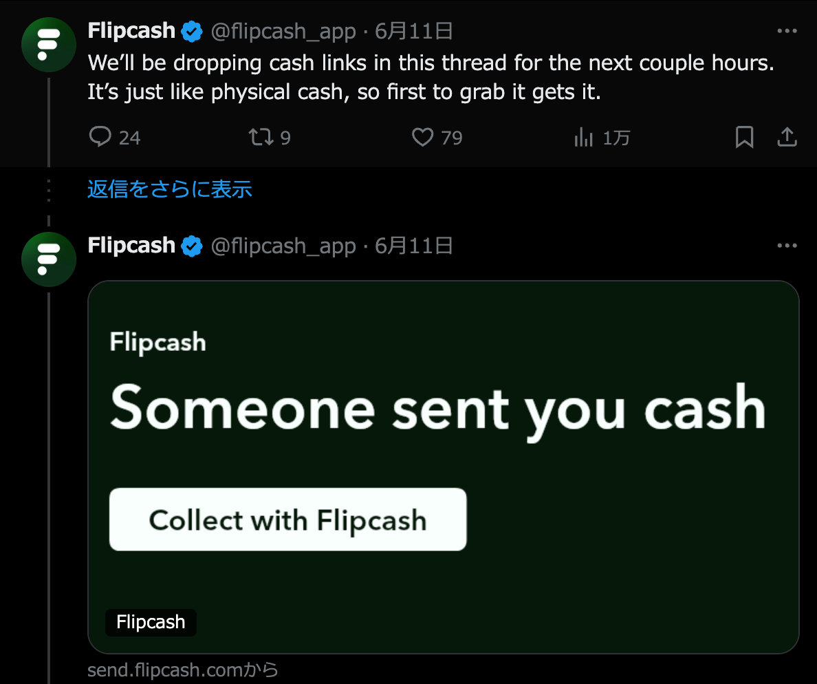 This approach was also used in the marketing of Flipcash, where a link is published on X and someone receives it on a first-come, first-served basis.