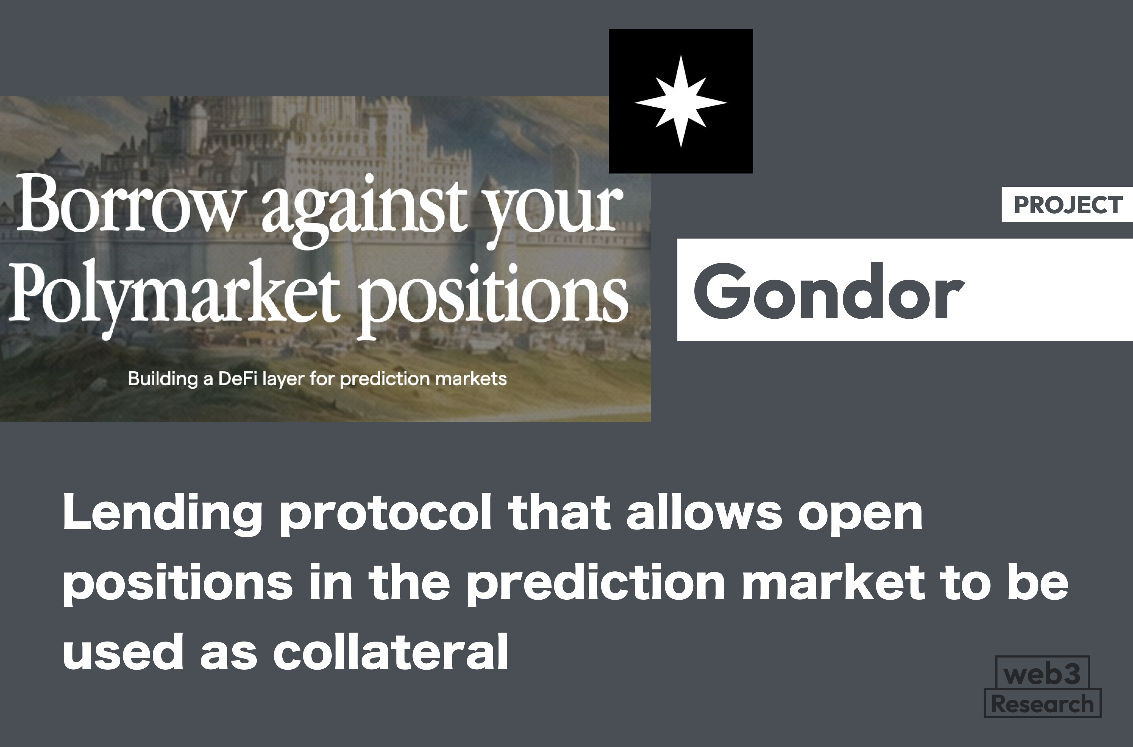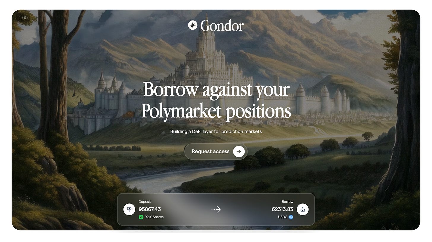 Gondor is an emerging startup developing a DeFi protocol that allows USDC to borrow against open positions in forecasting markets such as Polymarket.