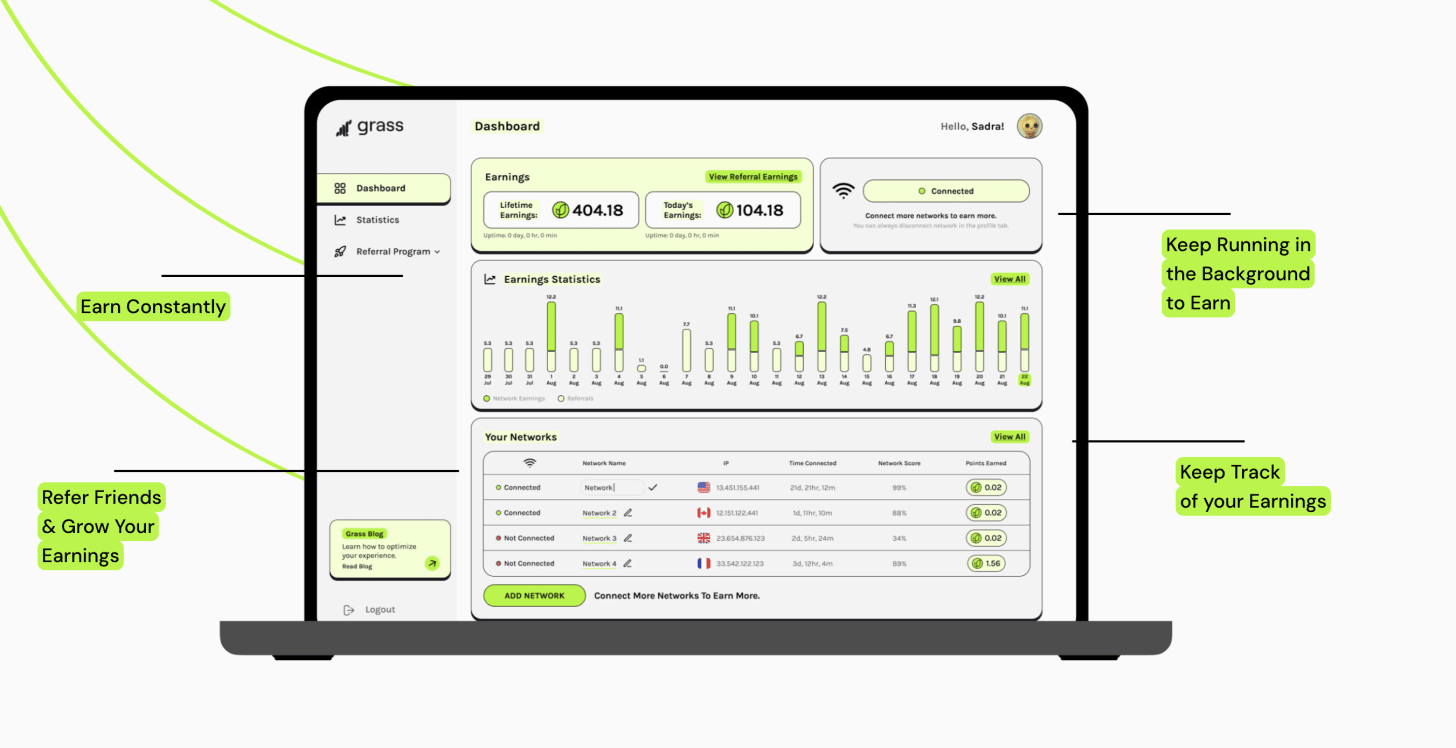Nowadays, collecting and analyzing big data has become essential in business activities. Therefore, we access the internet from various regions using IP addresses and gather information. In order to purchase the unused bandwidth of each user's internet, we pay money. Grass distributes those funds to the users.