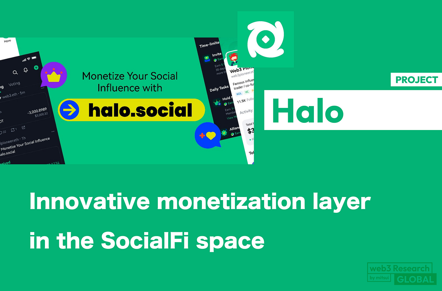 Halo is an innovative monetization layer in the SocialFi space that functions as a SocialFi application, but allows each user to earn money from the data and activity collected. The ultimate goal is to realize UBI (Universal Basic Income).