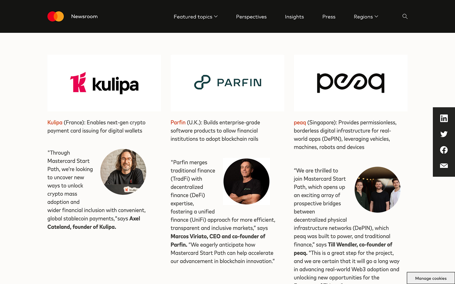 Kulipa will also be used by MasterCard to demonstrate the potential of blockchain togetherStart PathBlockchain and Digital Assets programhas been selected by five companies.