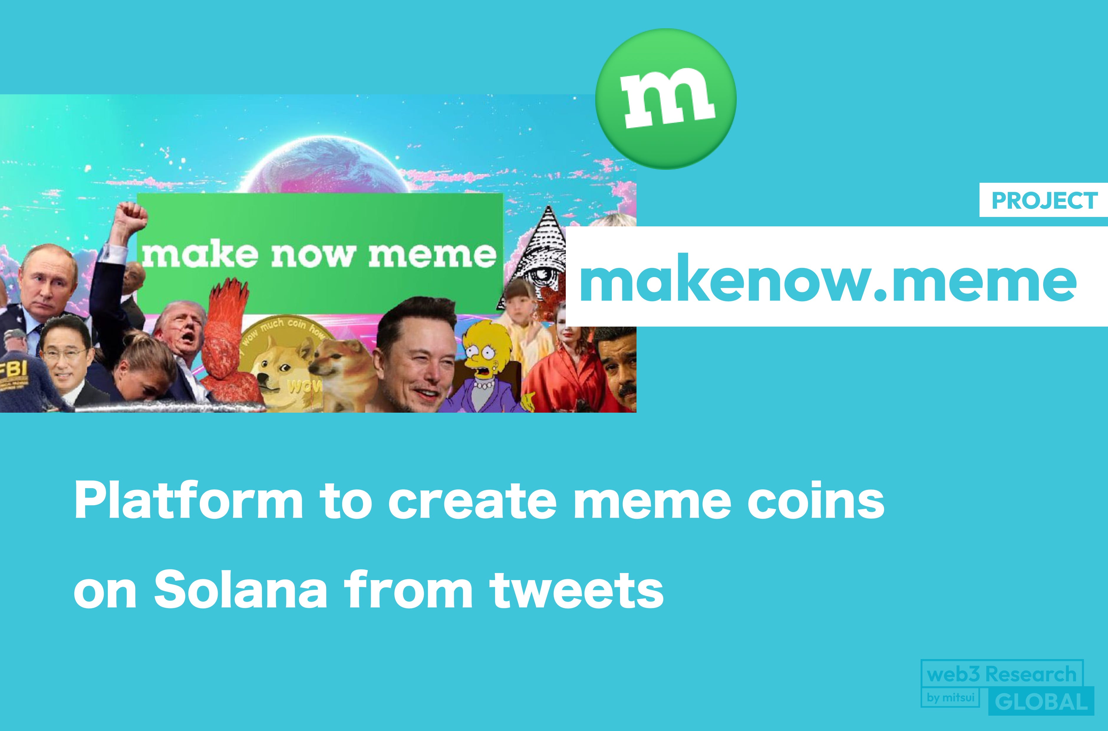 「makenow.meme」 is a platform that allows users to create meme coins on Solana from tweets. makenow.meme uses a bonding curve similar to Pump.fun, and once a token reaches a certain market cap, it is listed on the decentralized exchange Raydium.