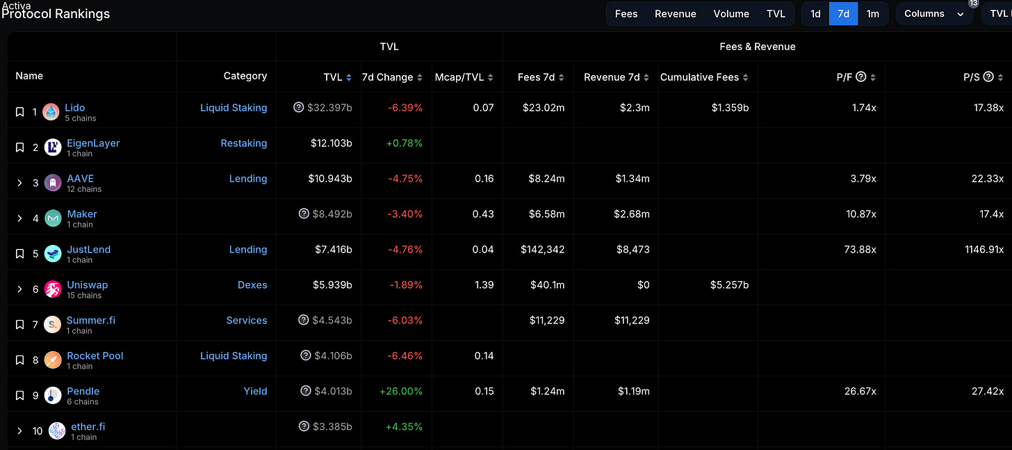 This is another TVL phenomenon, but Pendle's leap forward is remarkable, with a 26% increase in TVL.