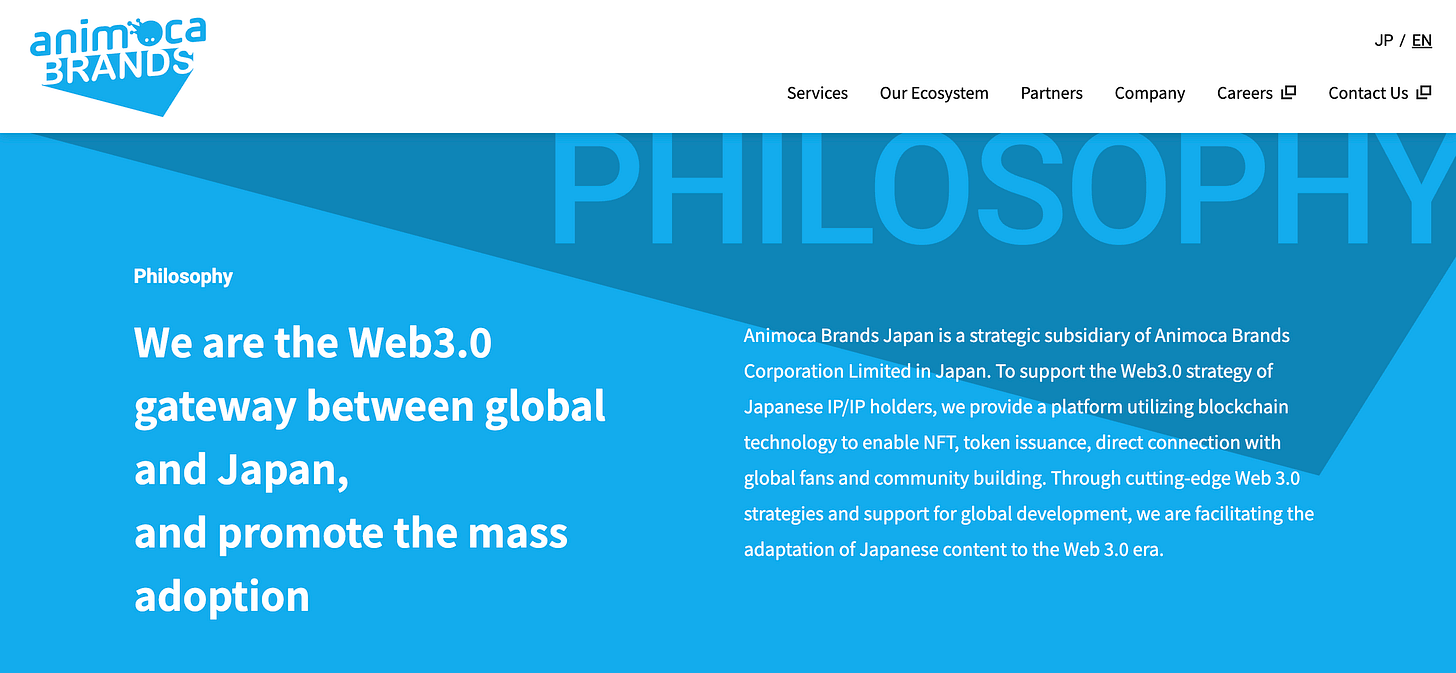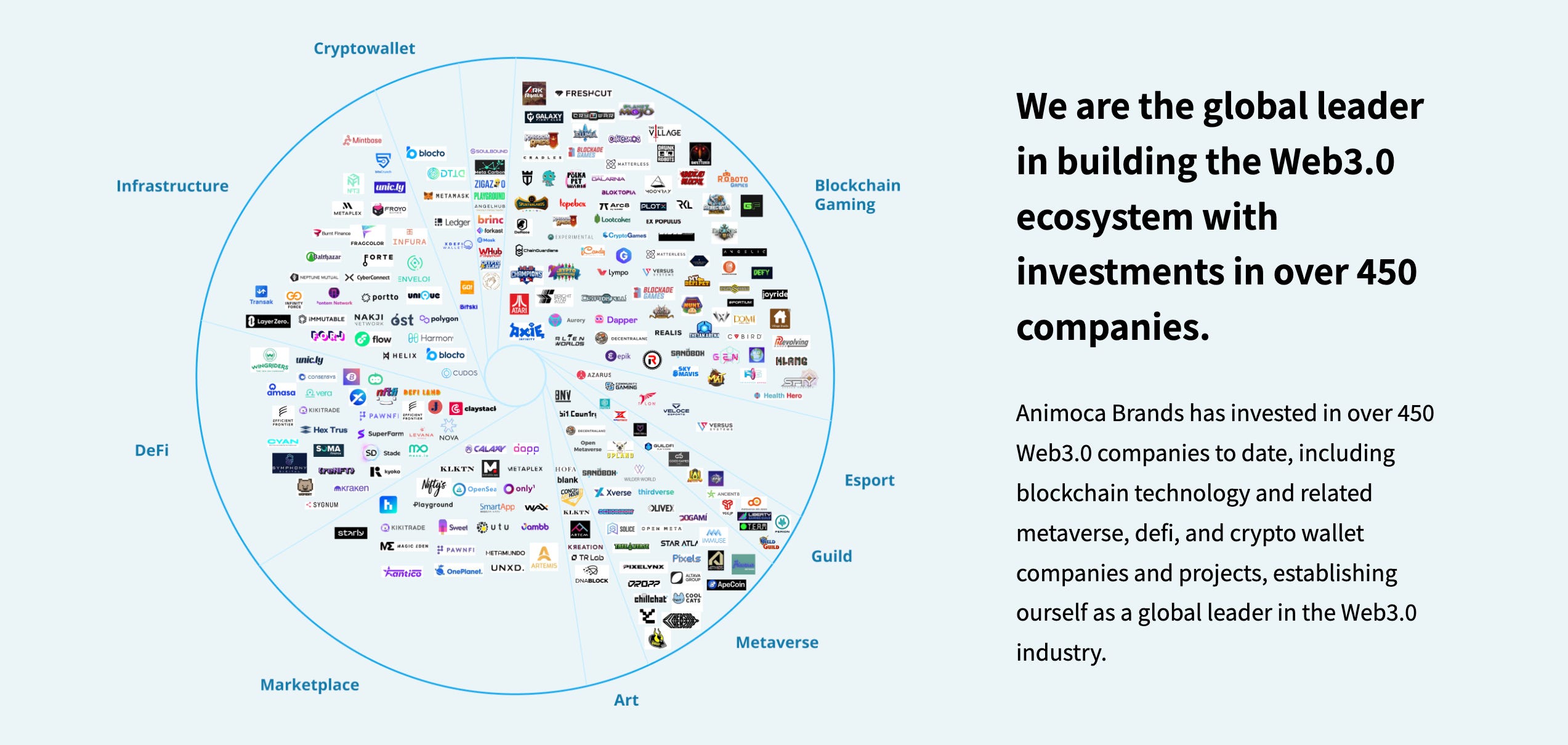 Animoca Brands is one of the world's leading web3 companies based in Hong Kong and one of the leading blockchain game, NFT and Metaverse related businesses.Founded in 2014 by Yat Siu and others, the company was initially a mobile game publisher but around 2018, the company made a major shift to NFT and blockchain technology.