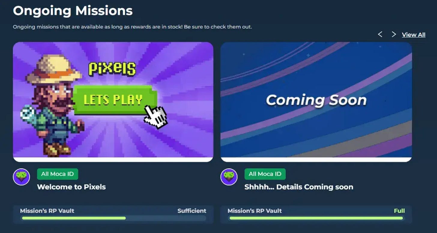 Mocaverse also included the concept of "Realm," with activity categories such as Learn, Play, Do Good, and Build. This was designed as a points program, so to speak, in which "Realm Points (RP)" were accumulated through participation in activities in each category.