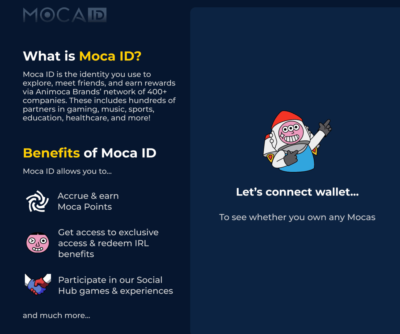 This allows selected web3 community members to participate in the Mocaverse DID system, even if they are not directly affiliated with Animoca Brands. Moca ID holders are also entitled to earn Realm Points and have visibility into their community contributions without distinction from Moca NFT holders.