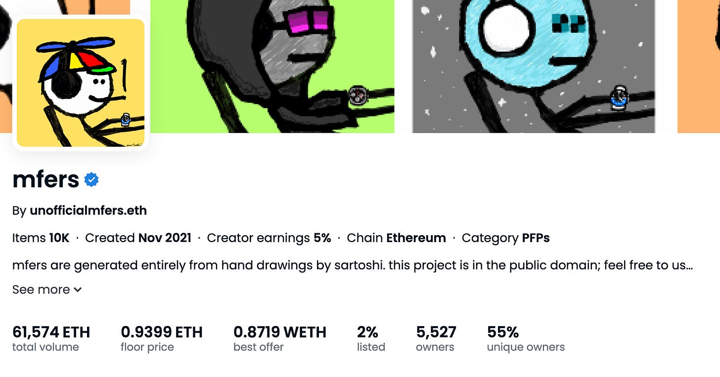 Sartoshi is the person who created the very popular NFT project called "mfers".