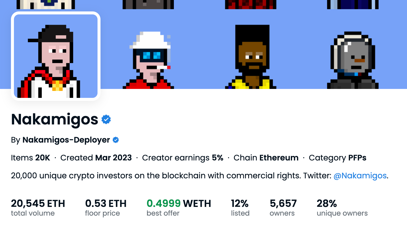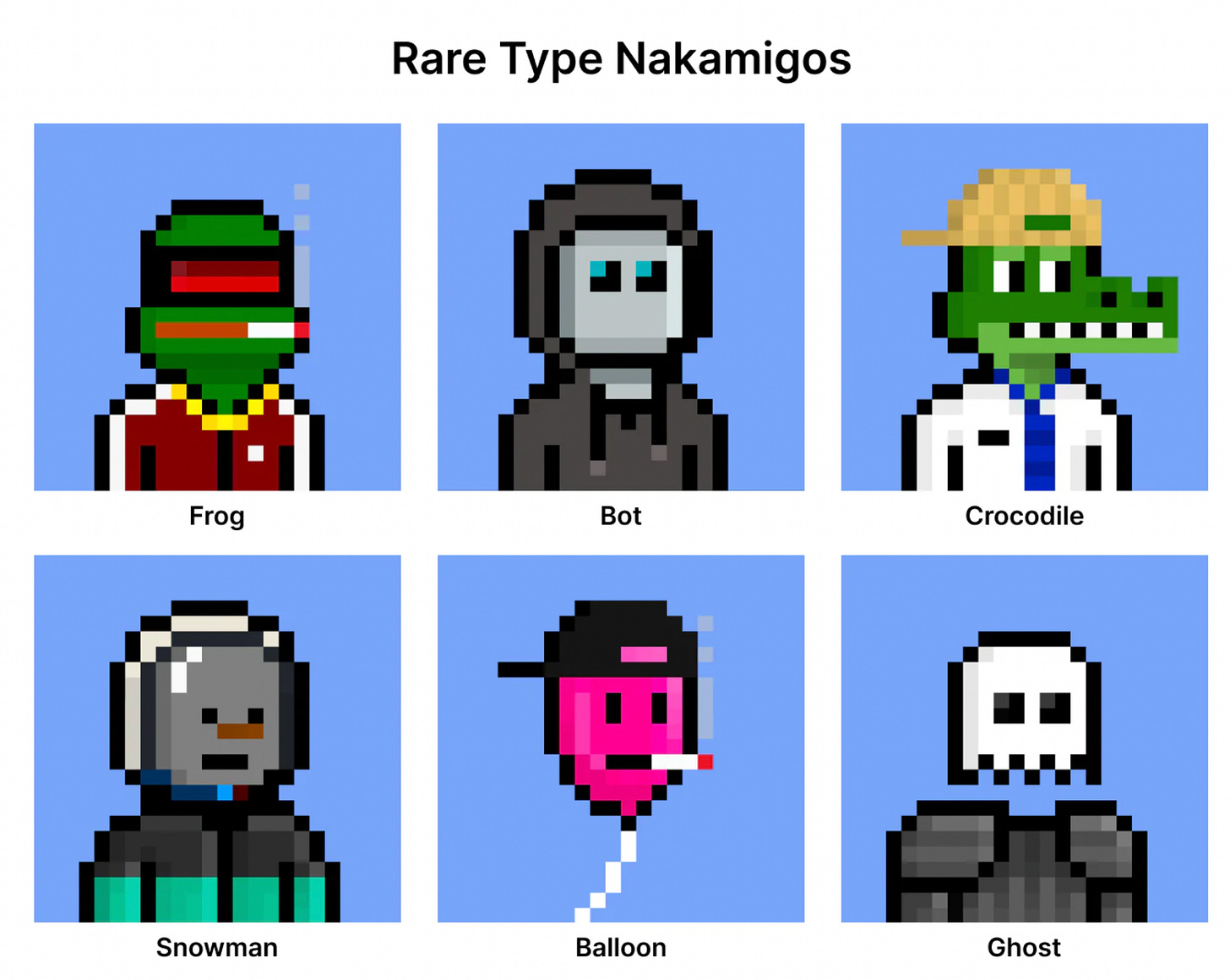 Nakamigos" is a 20,000-piece generative NFT with a crypto-style design similar to CryptoPunks.