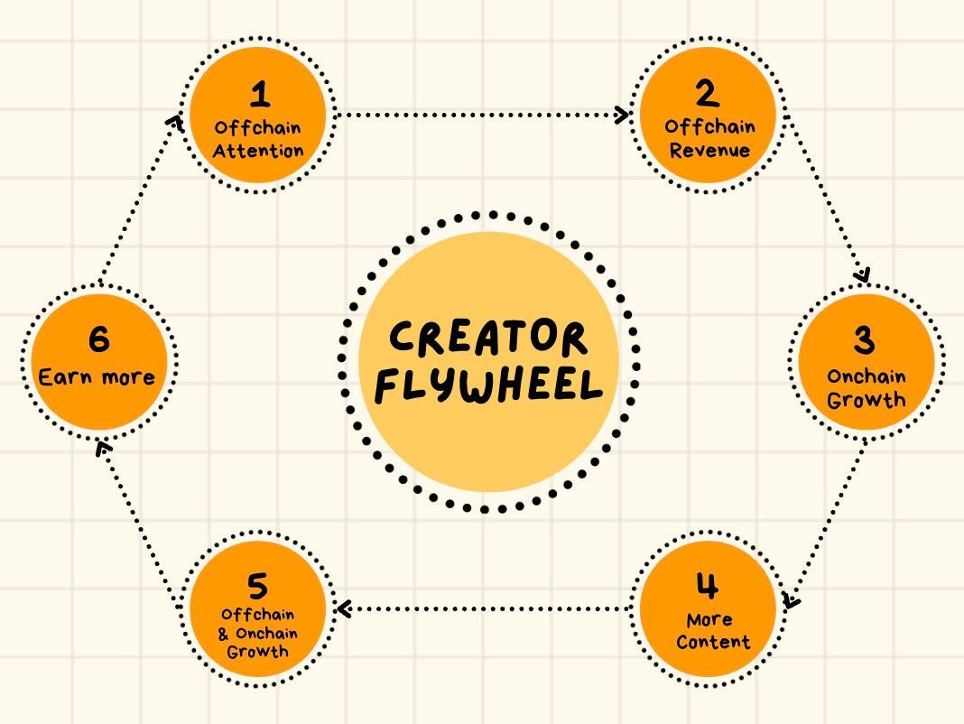 The following is purrLabs’ creator flywheel model, where the initial starting point is off-chain attention and revenue. The momentum is then carried on-chain, utilizing token transaction fees and other mechanisms to create content, thereby further spinning the flywheel.