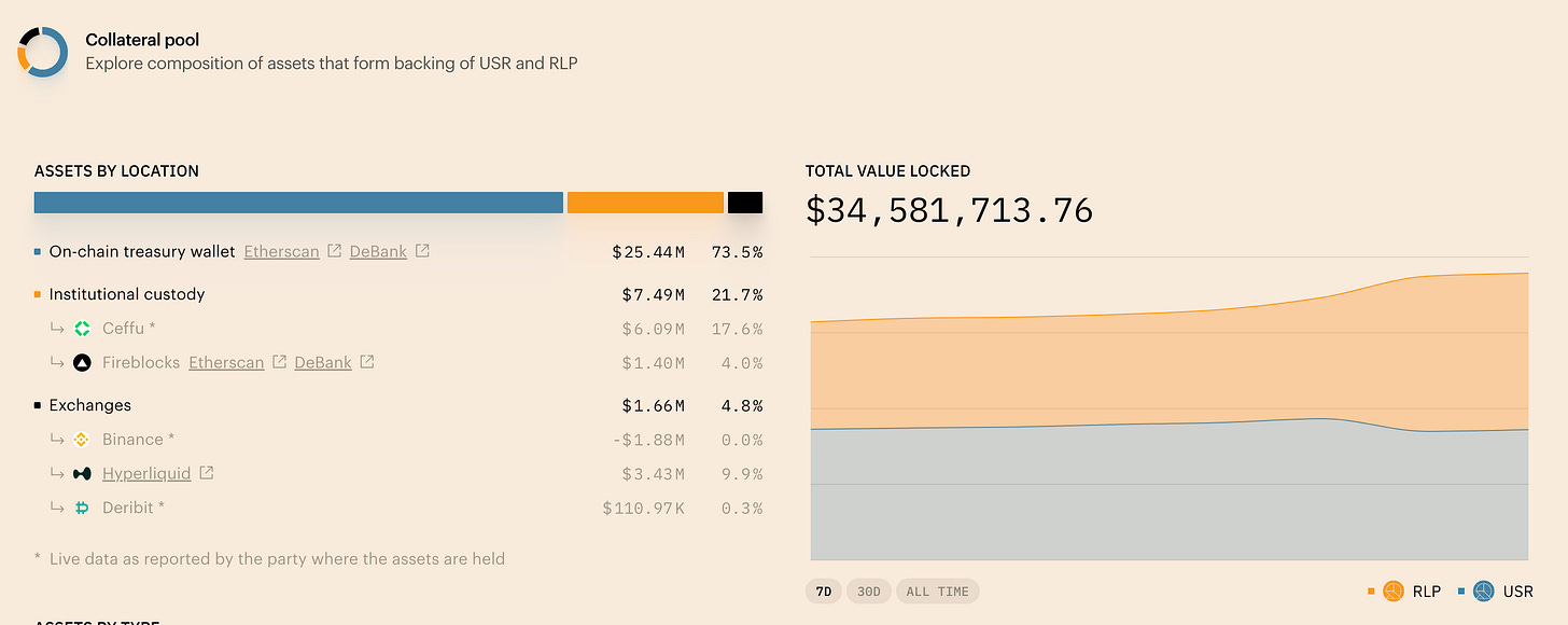This strategy has succeeded in creating a capital-efficient stablecoin, with USRs issued on a one-for-one basis, while most assets are managed on-chain with RLPs acting as an insurance layer for excess collateral.