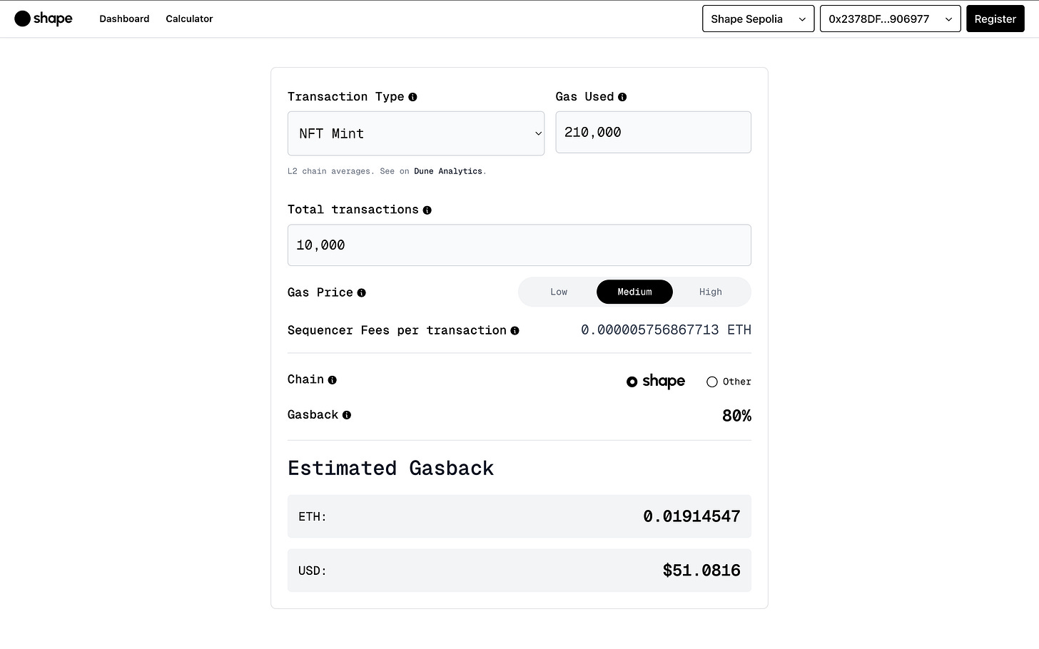 Of the other 20%, 15% goes to the Optimism Collective as a return for participating in Optimism Superchain, and 5% to the Shape Foundation.
