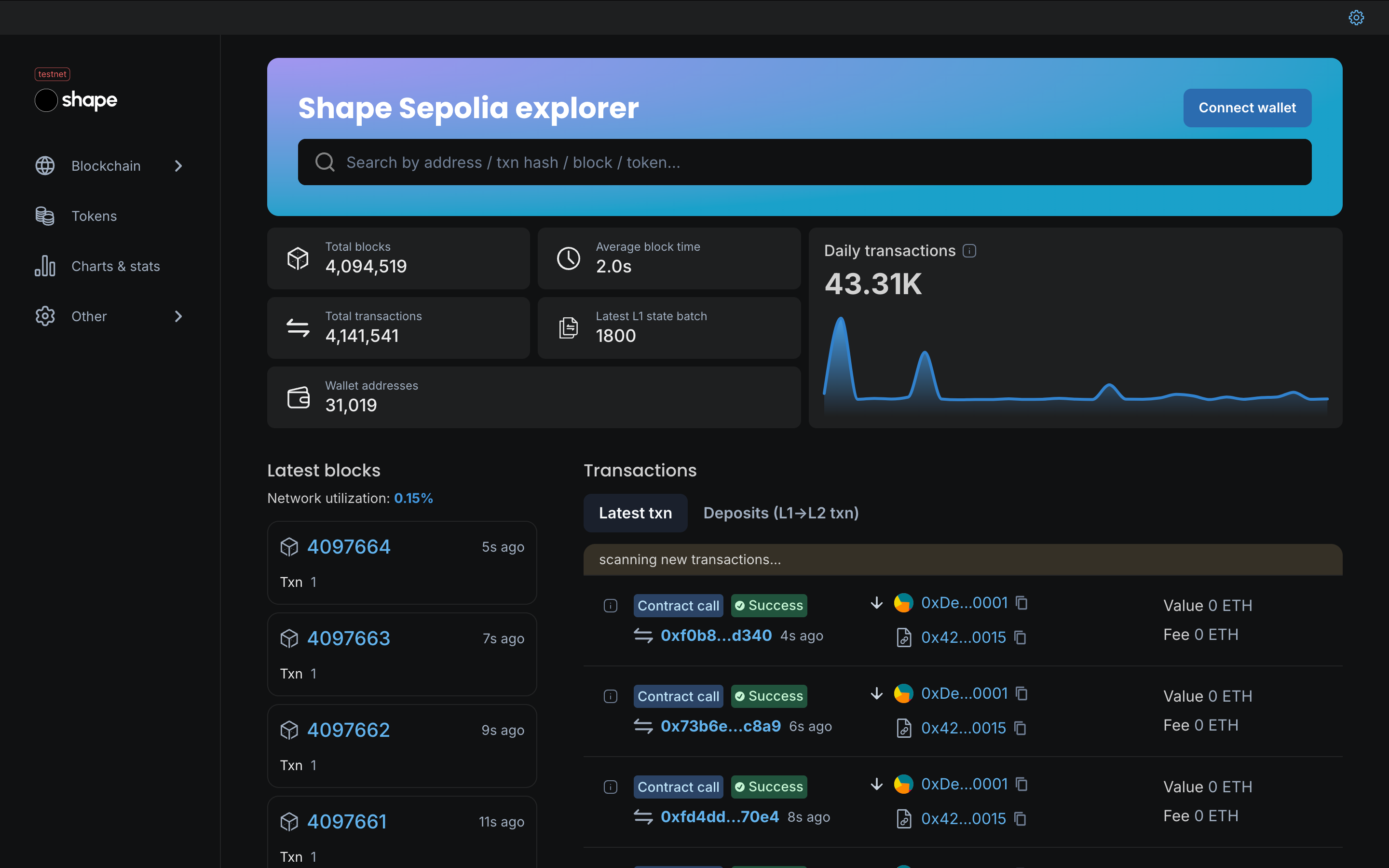For example, Highlight, an NFT creator and collector platform, will provide full Shape NFTindexing and marketplace support, and also integratesTransient Labsa custom NFT smart contract platform.We also partner with Alchemy for development kits, Safe for wallet infrastructure, and USDC.