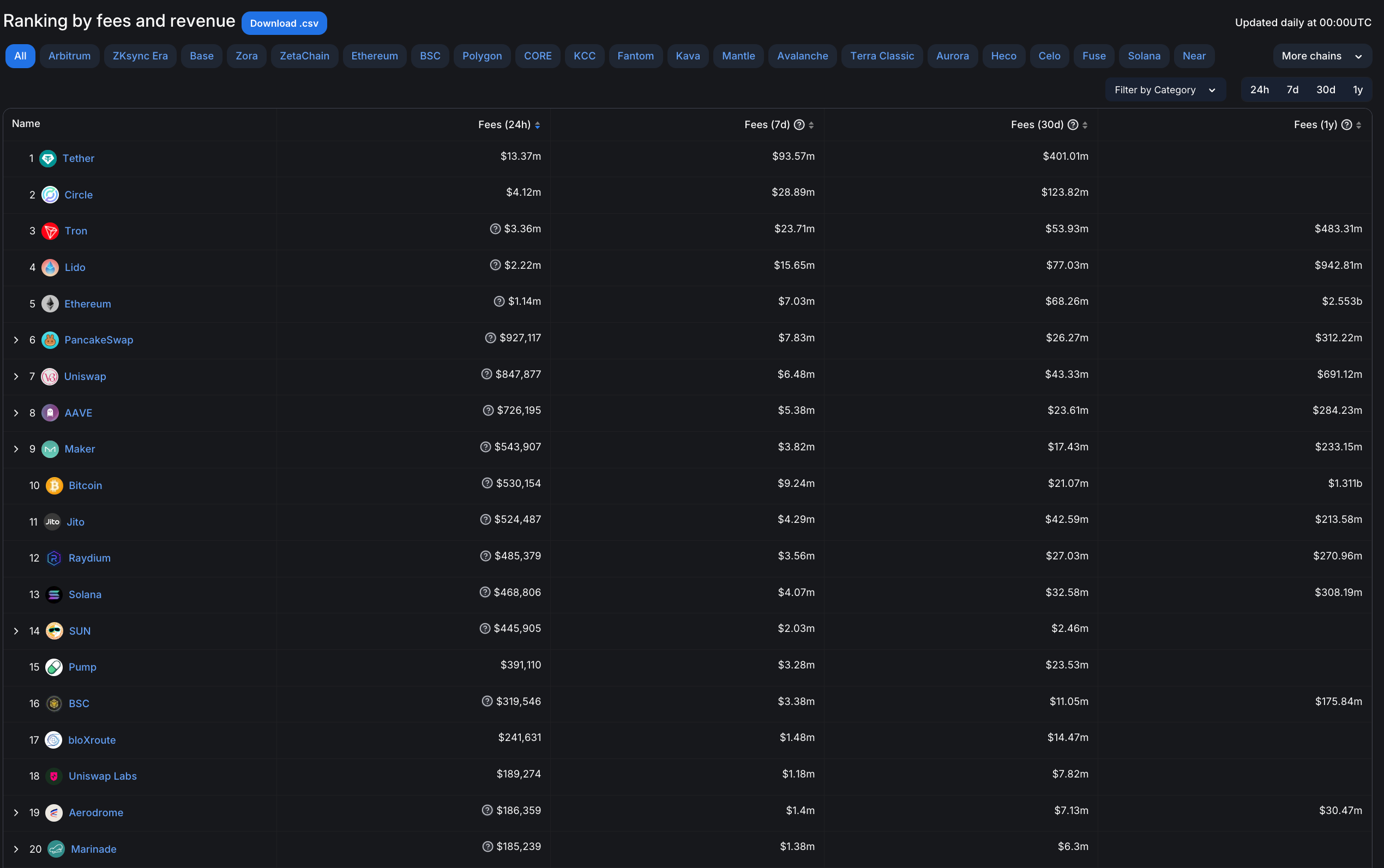However, as mentioned above, the most recent daily revenue was Pump[.].fun and was ranked 14th among all protocols, including blockchain, in defillama's protocol fee rankings.