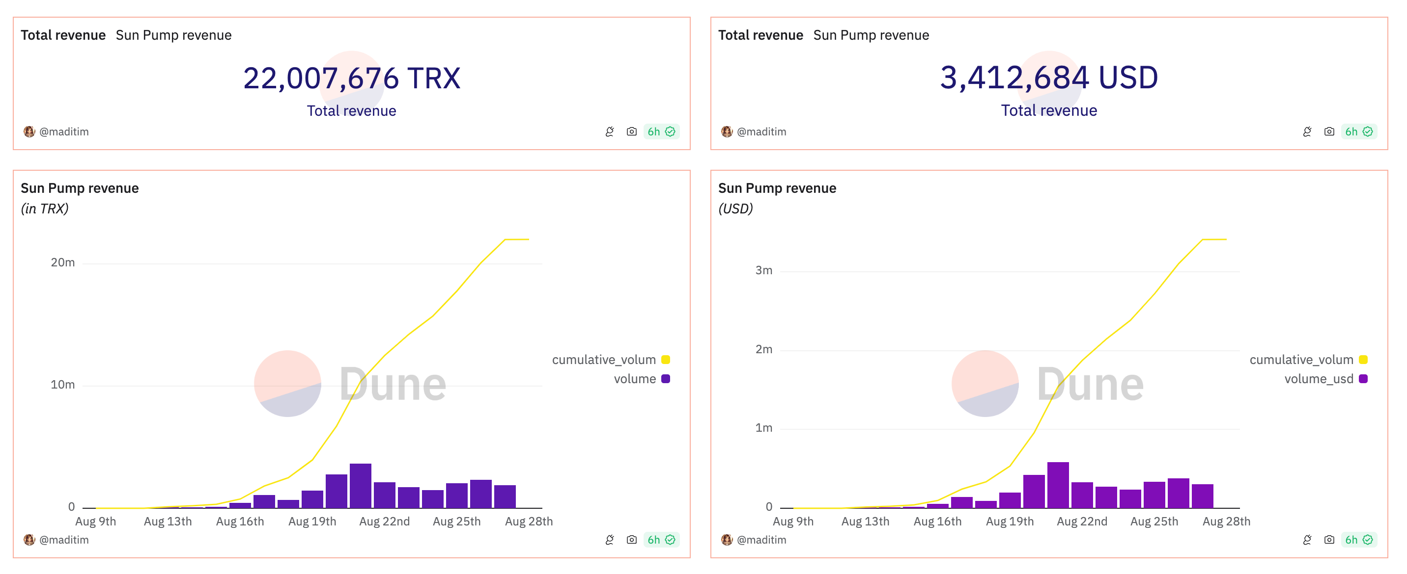 And this Sun Pump momentum is also contributing to the increase in Tron fees.We have seen a sharp increase since late August, just when the Sun Pump was gaining momentum.