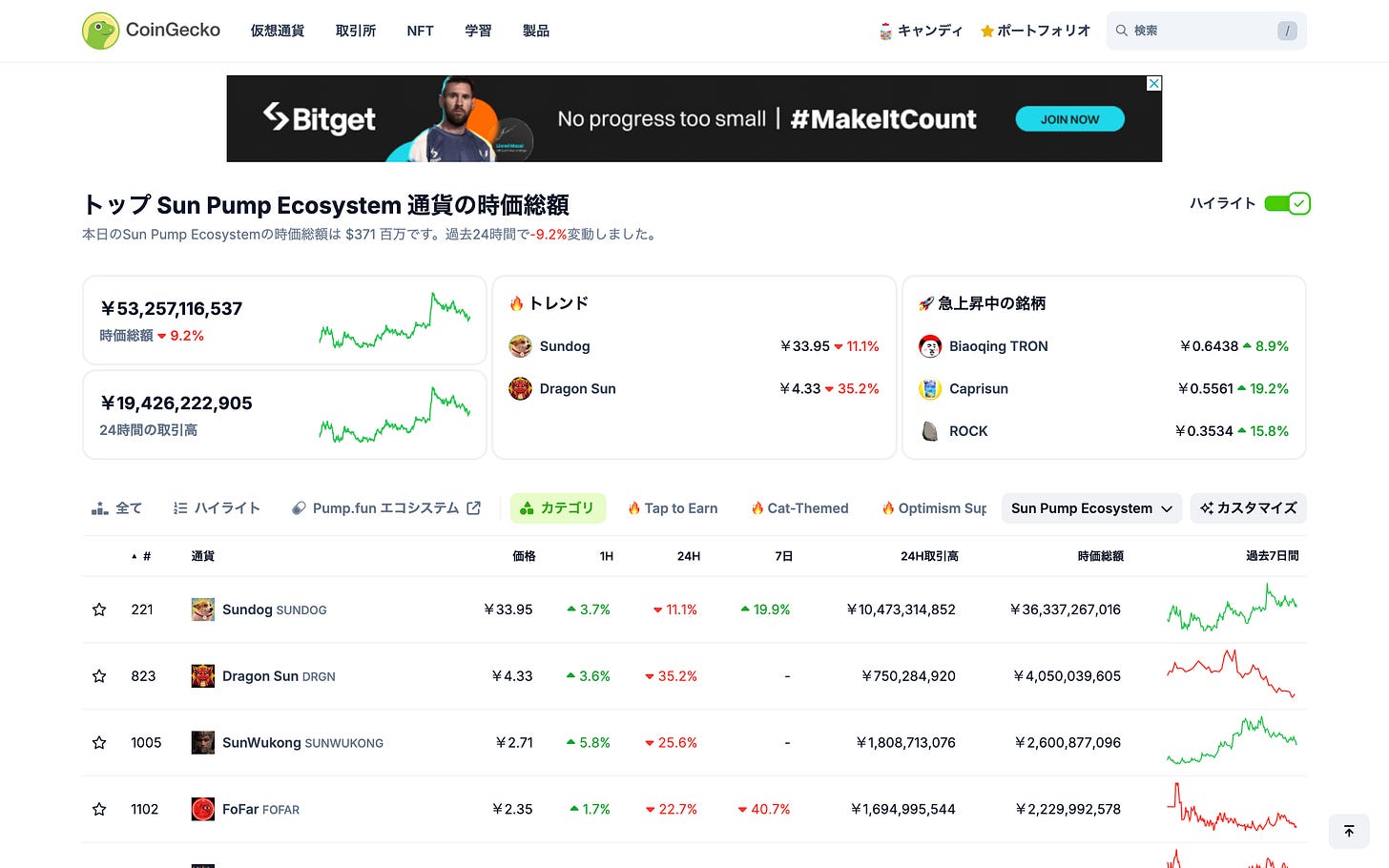 Although the ecosystem is not yet that huge, a category has been created on CoinGecko, and the number one token is called $SUNDOG.