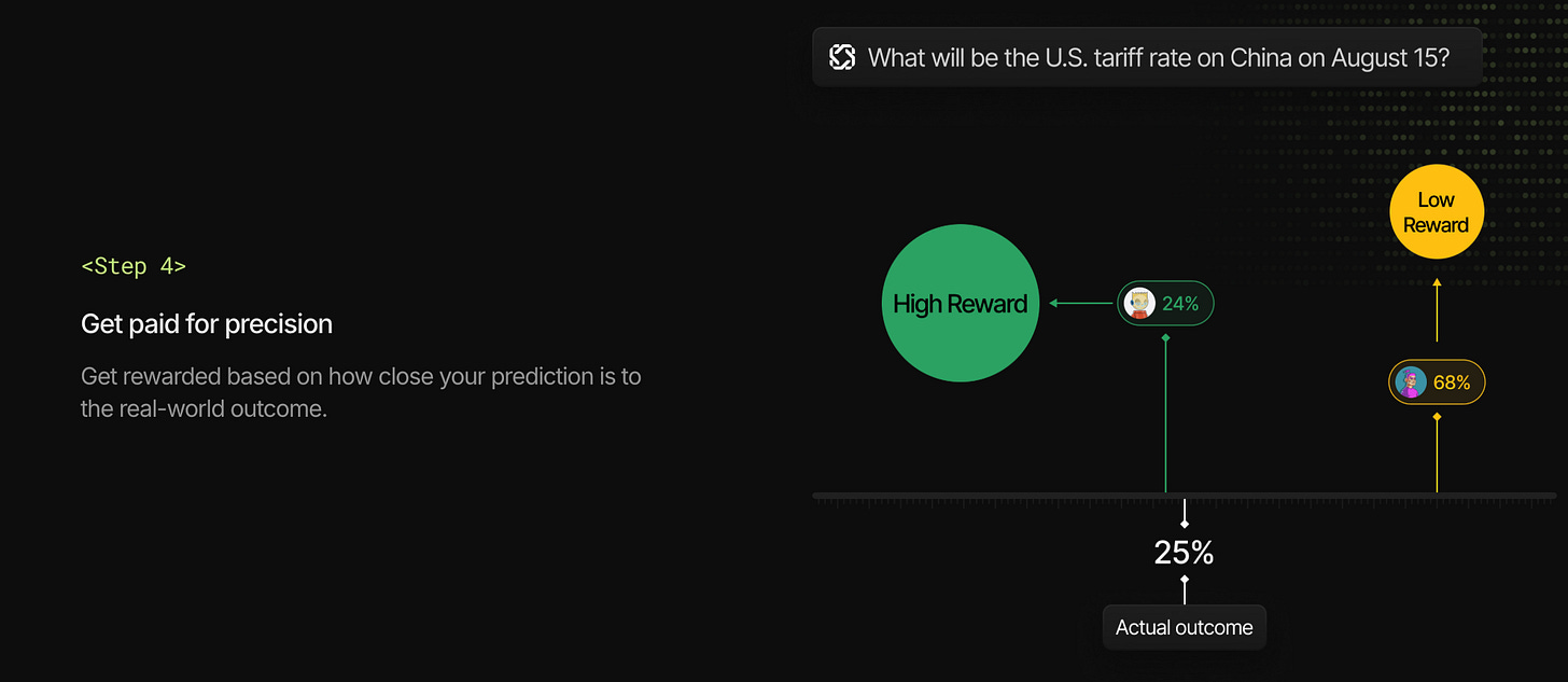 Rewards are paid in proportion to how close the forecast is to the actual result (forecast accuracy), rather than on a binary hit/miss basis. This reduces risk for participants by providing a certain amount of reward even for "close predictions.Specialization in numerical forecasting