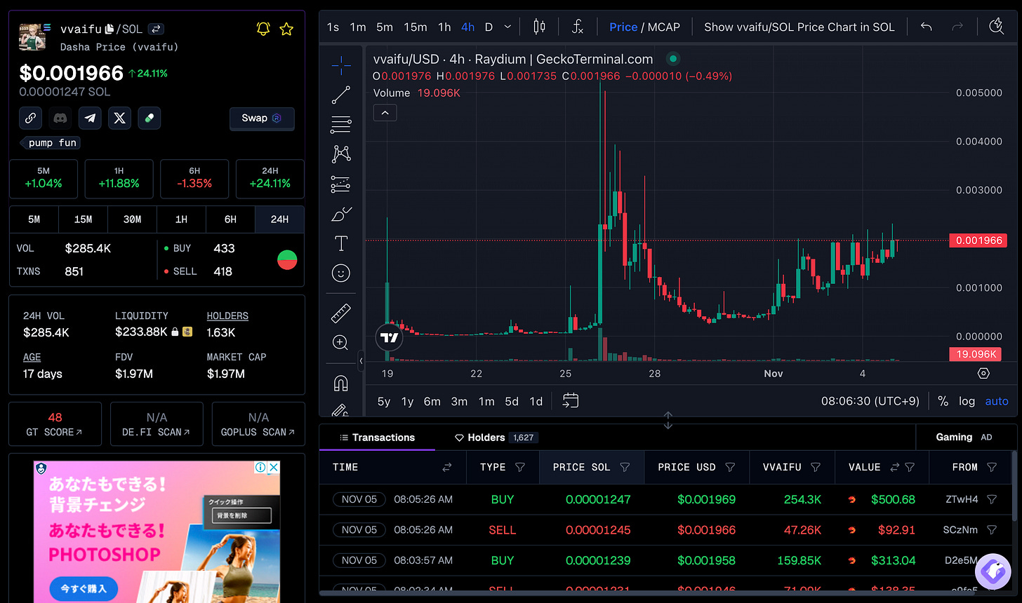 I don't know if this is a good form of product, but I think this way of being is very unique, and I think it is a cooperation unique to crypto.Nevertheless, I thought that vvaifu.fun will become a little more famous in the future.