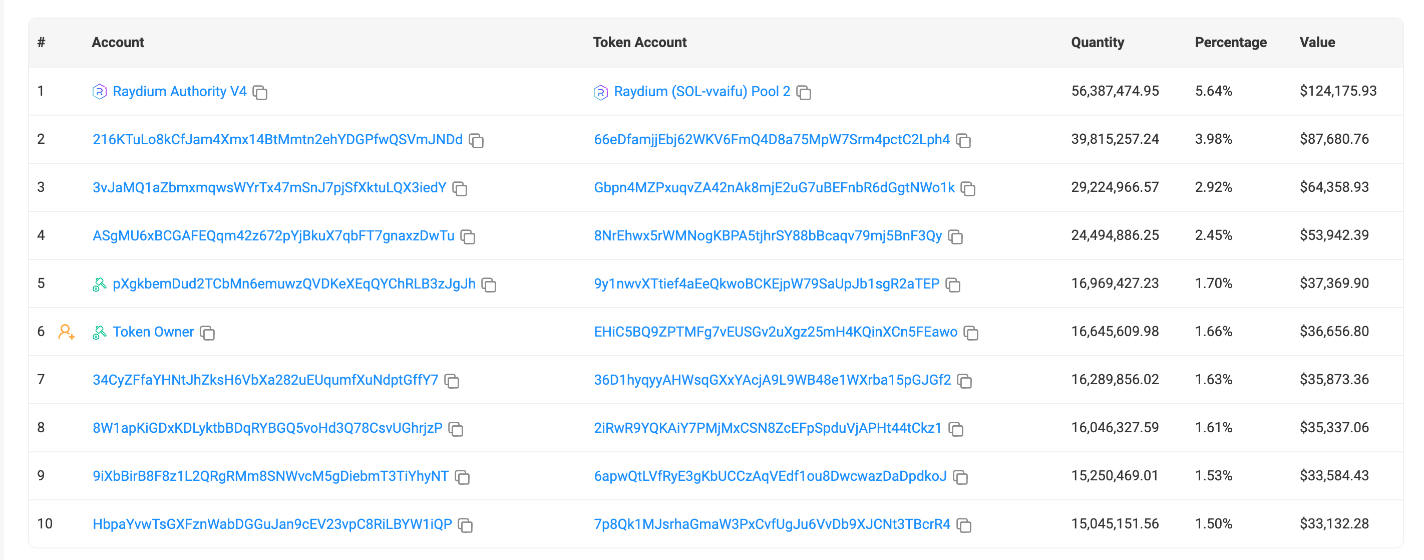 Solsan showed that Token Owner held 1.66% of the tokens.This would be $36,487.68 in current value.