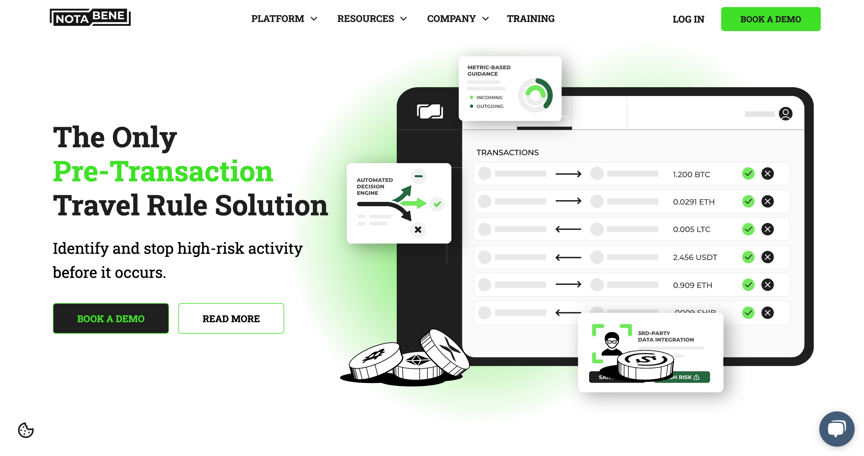 Overview:An end-to-end compliance platform designed to help Virtual Asset Service Providers (VASPs) meet regulatory standards, including travel rulesPlatform.Provides automation of processes such as real-time risk management, sanctions screening, self-hosted wallet identification, and AML compliance.
