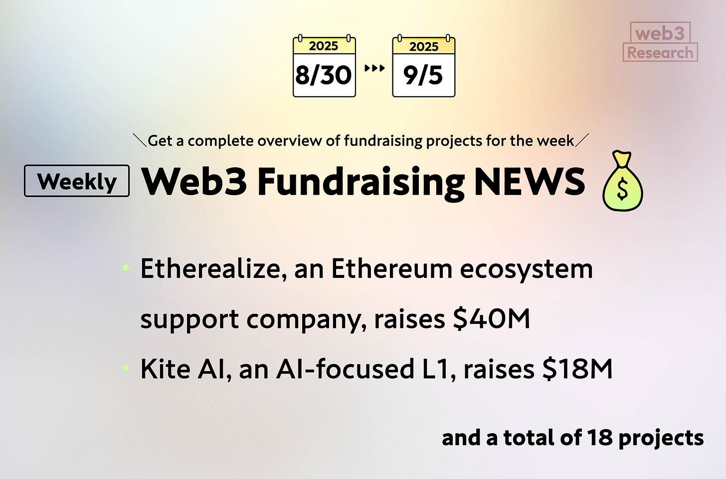Etherealize, an Ethereum ecosystem support company, raises $40M, Kite AI, an AI-focused L1, raises $18M, all 18 PJs 【Fundraising PJ Summary】
