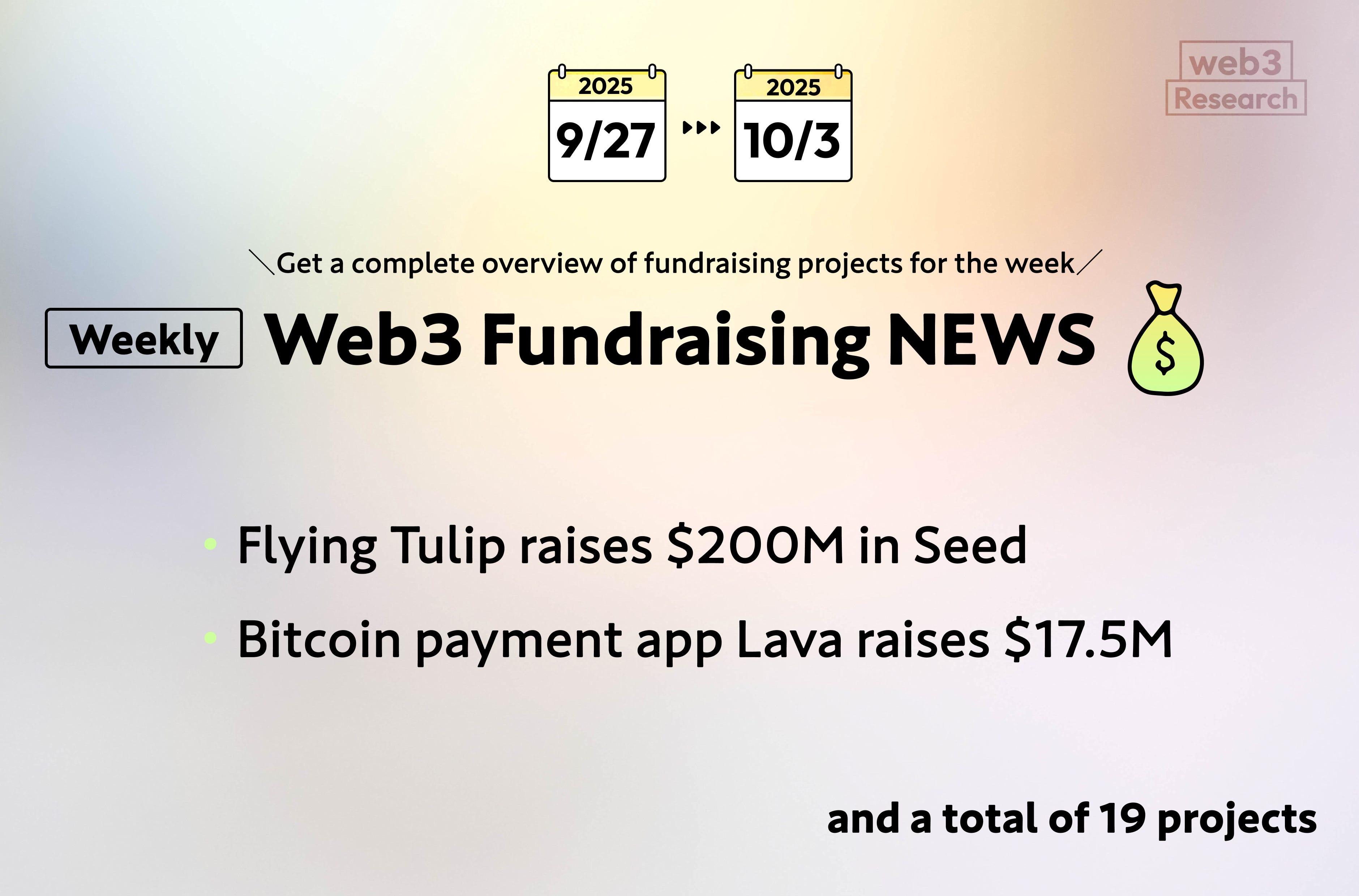 Flying Tulip raises $200M in Seed, Bitcoin payment app Lava raises $17.5M, and 19 other PJs in all【Fundraising PJ Summary】