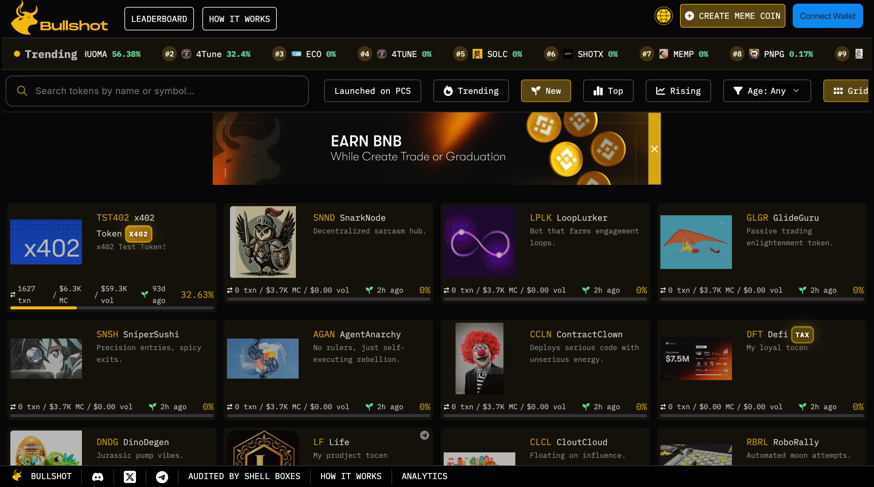 Overview:BNB Chain-based AI-powered meme token launchpad enabling one-click token creation and deployment. Combining AI automation, bonding curve mechanics, and anti-bot protection systems to deliver seamless token launches without coding knowledge.