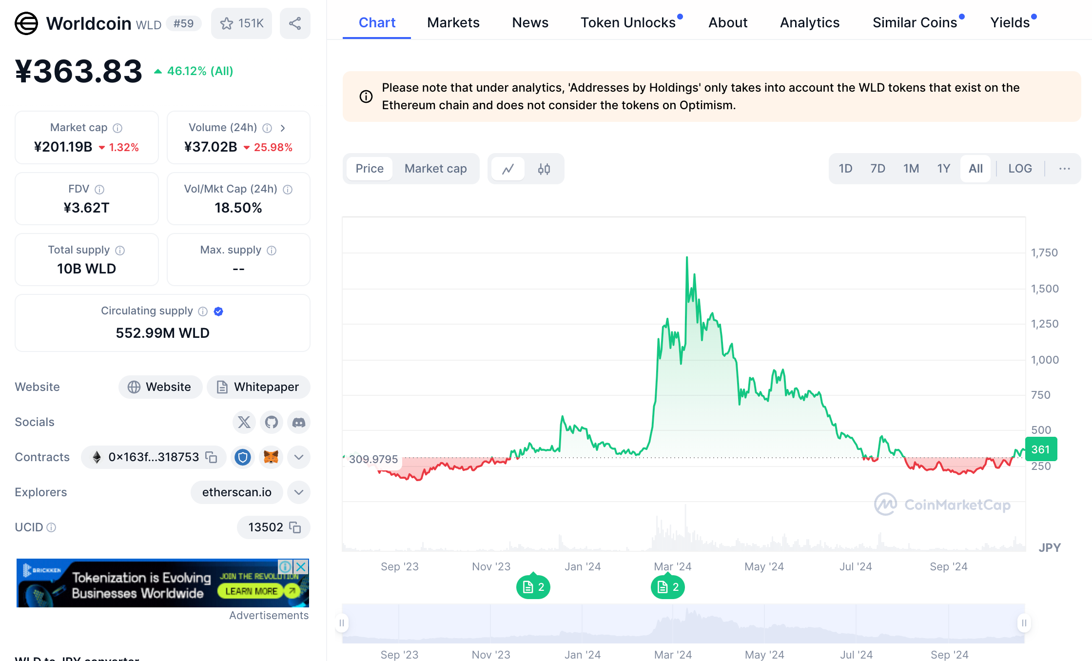 Following these announcements, the price of WLD has risen slightly.And before you know it, it has risen to 59th place in the market cap.