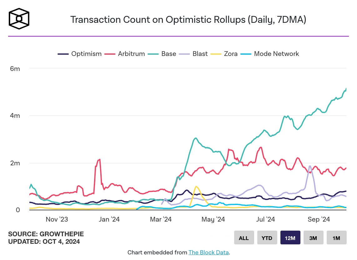 Competitor Base has recorded 755 million transactions to date, while OP Mainnet has reached 347 million transactions.