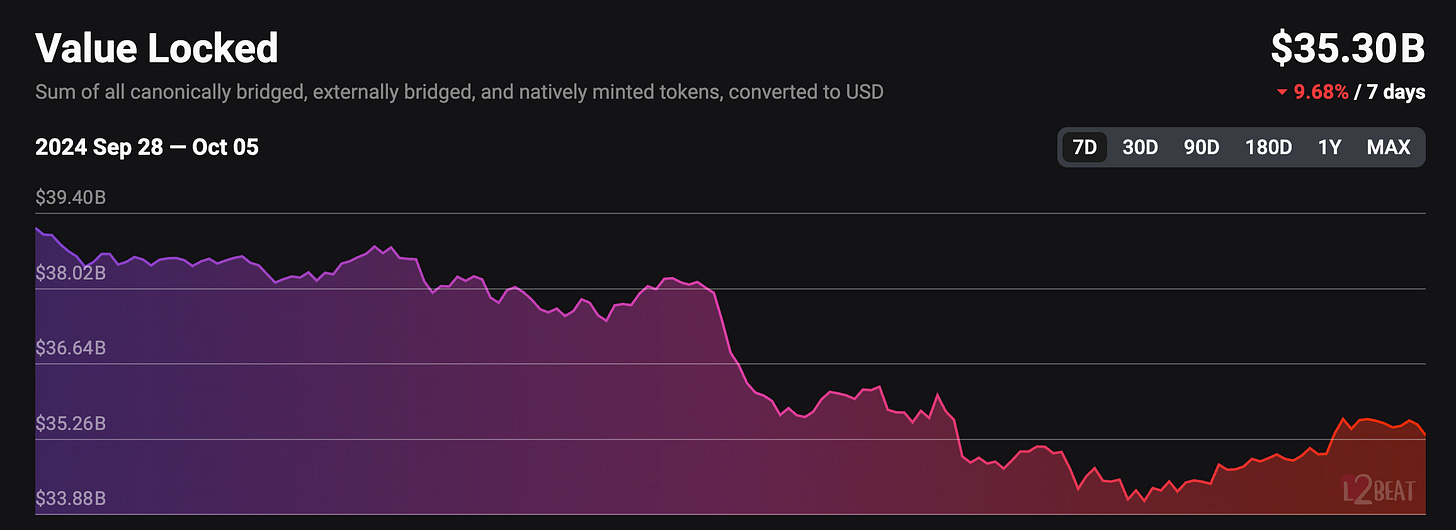 Arbitrum's TVL remains the highest among Layer 2 solutions at $2.5 billion, followed by Base at $2.2 billion.
