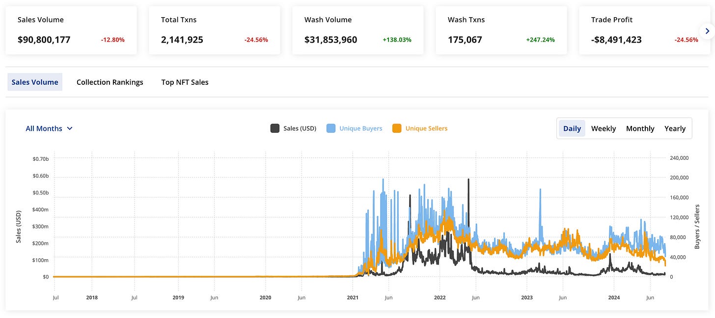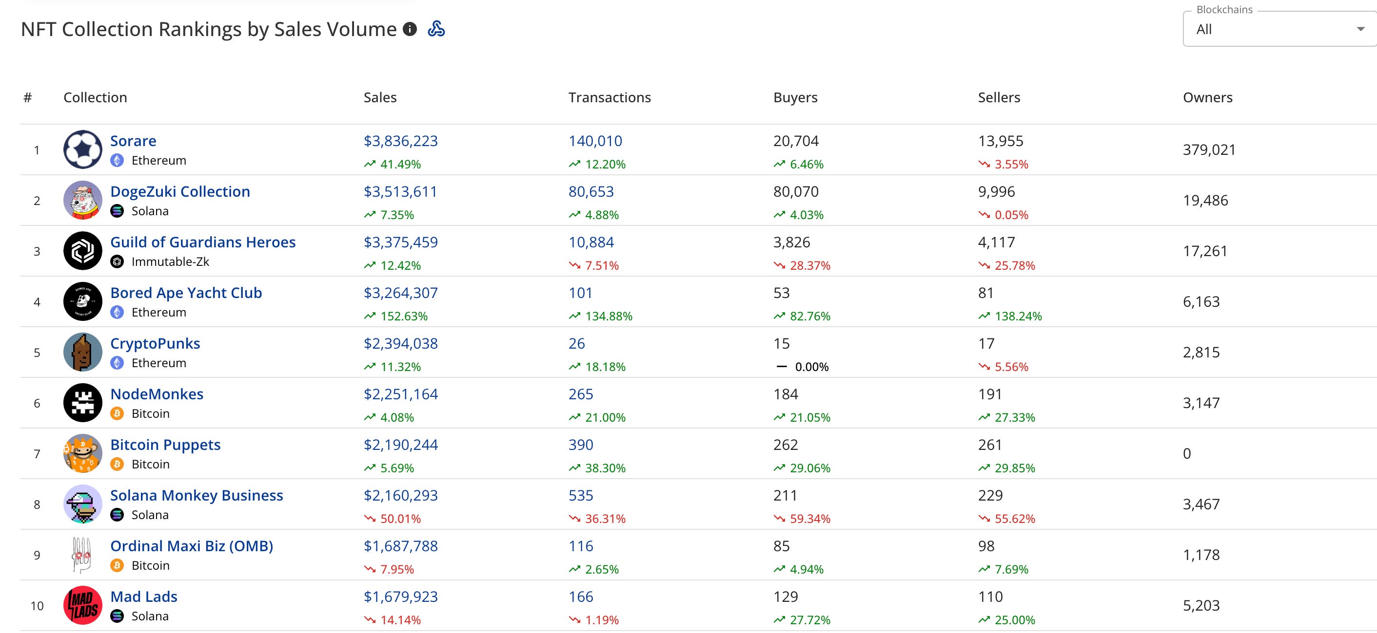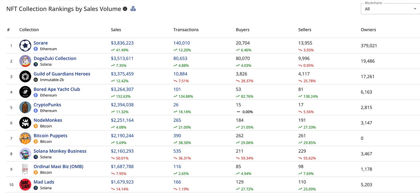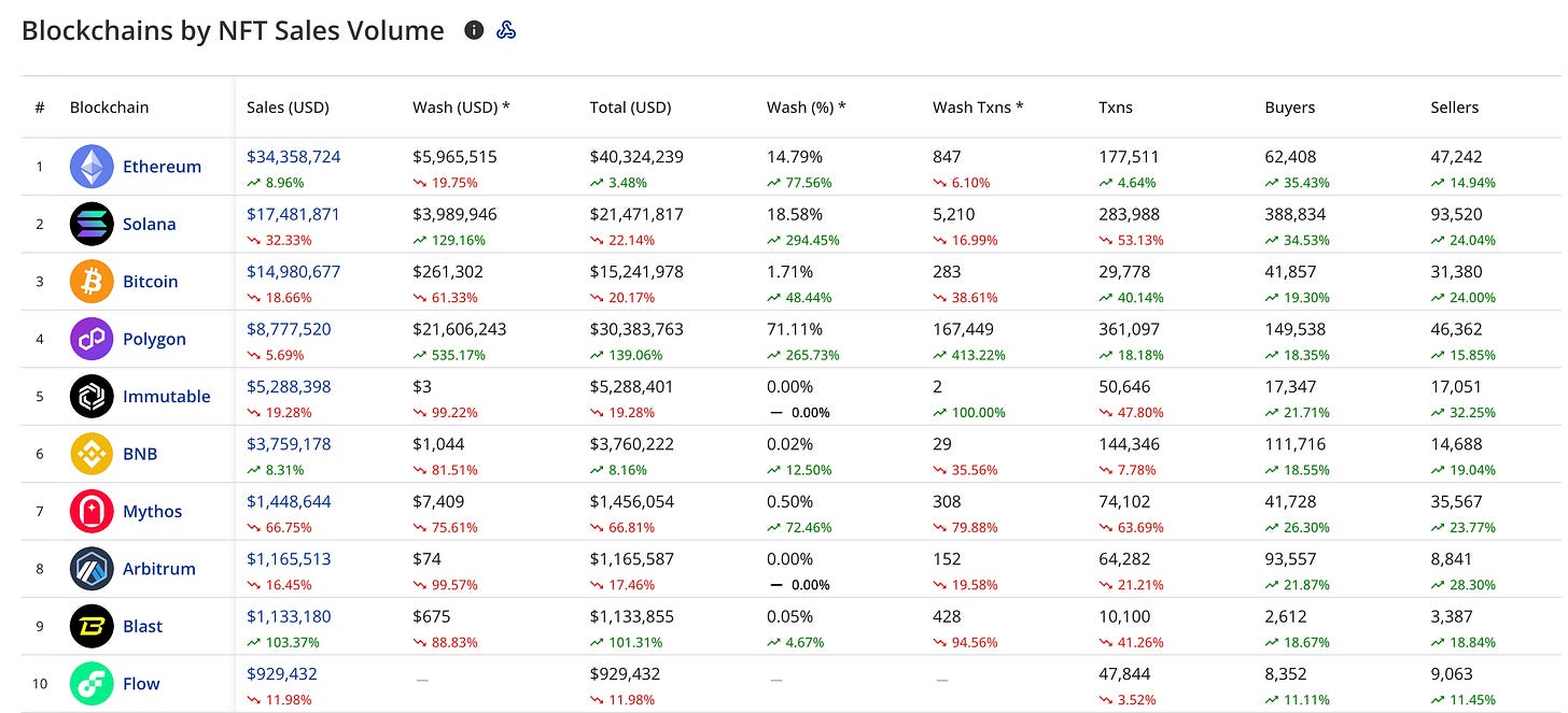 I see that NFTs are decreasing in overall market volume, but some chains are increasing.