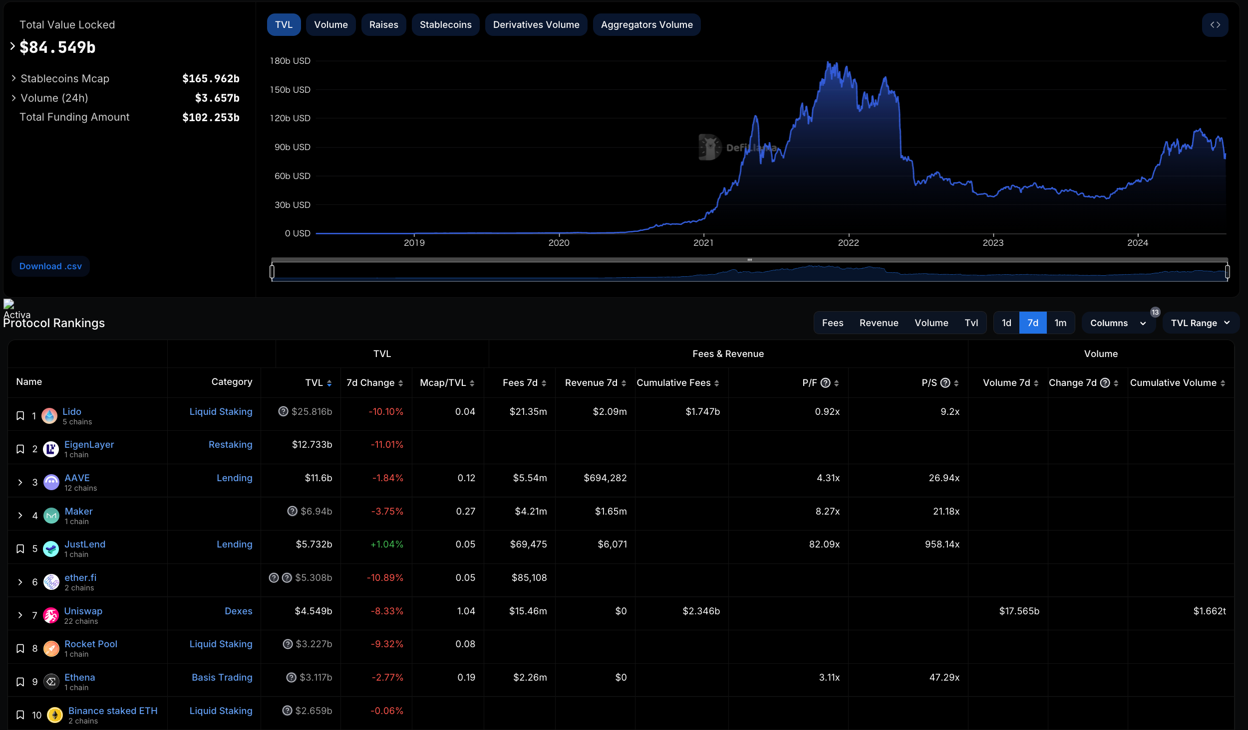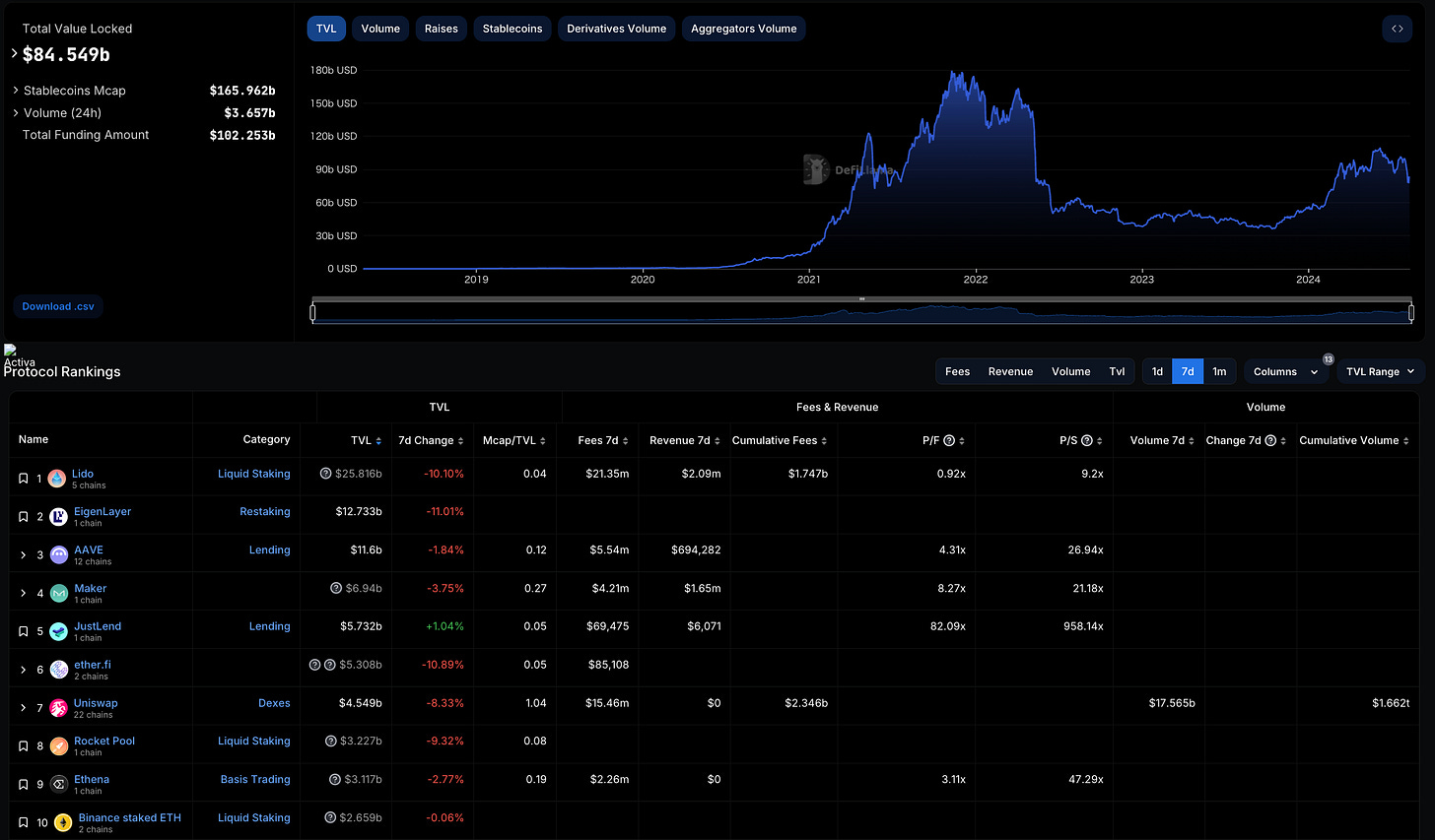 TVL is falling overall.