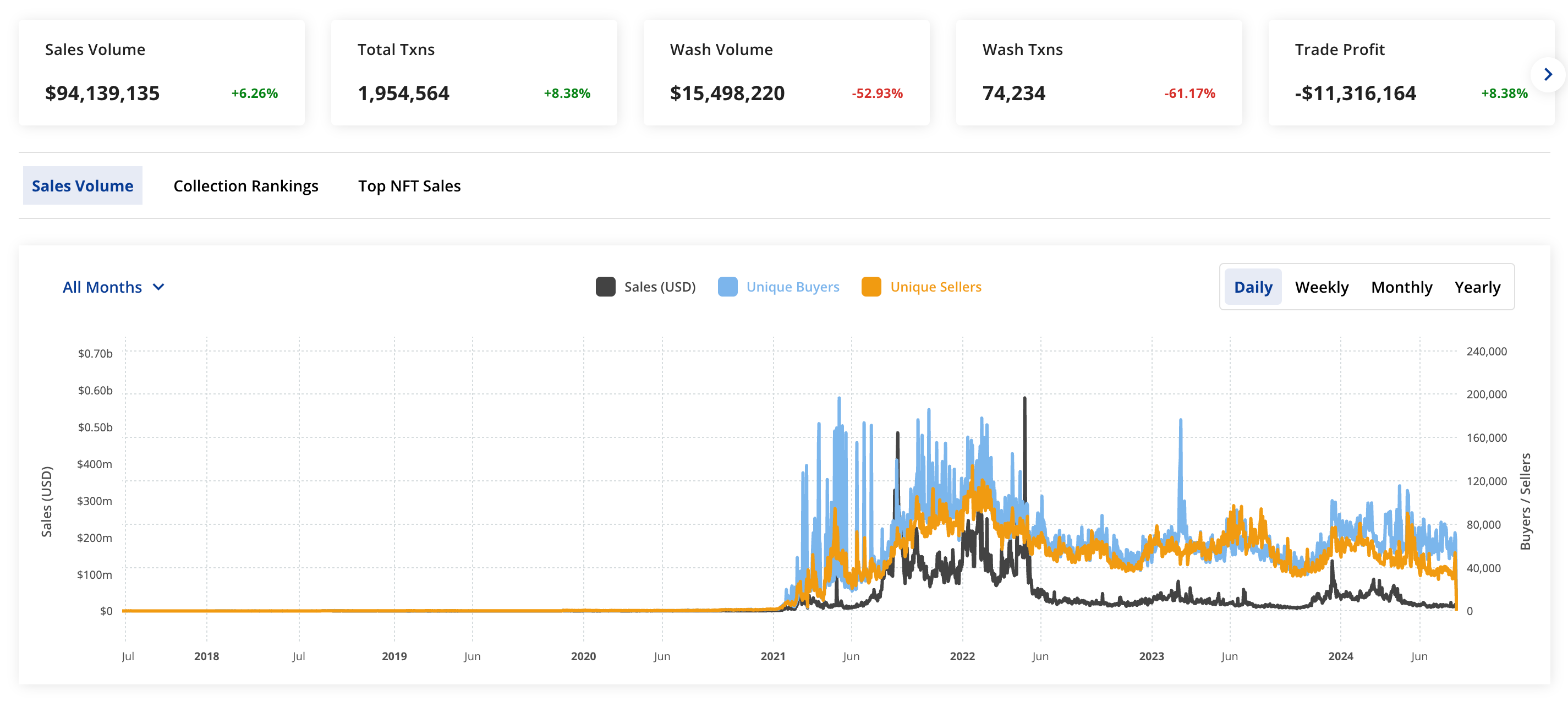 The volume of transactions has increased slightly.