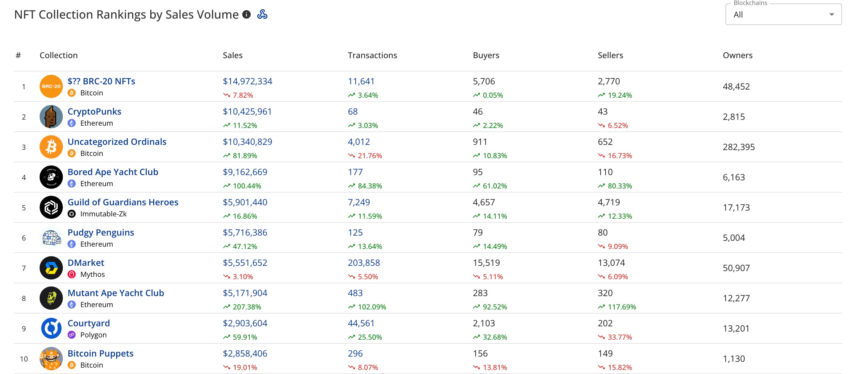 Some of the top projects rose while others fell.