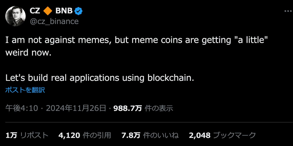 Changpong Jiao (CZ), founder and former CEO of Binance, sparked a debate about meme coins in the virtual currency world