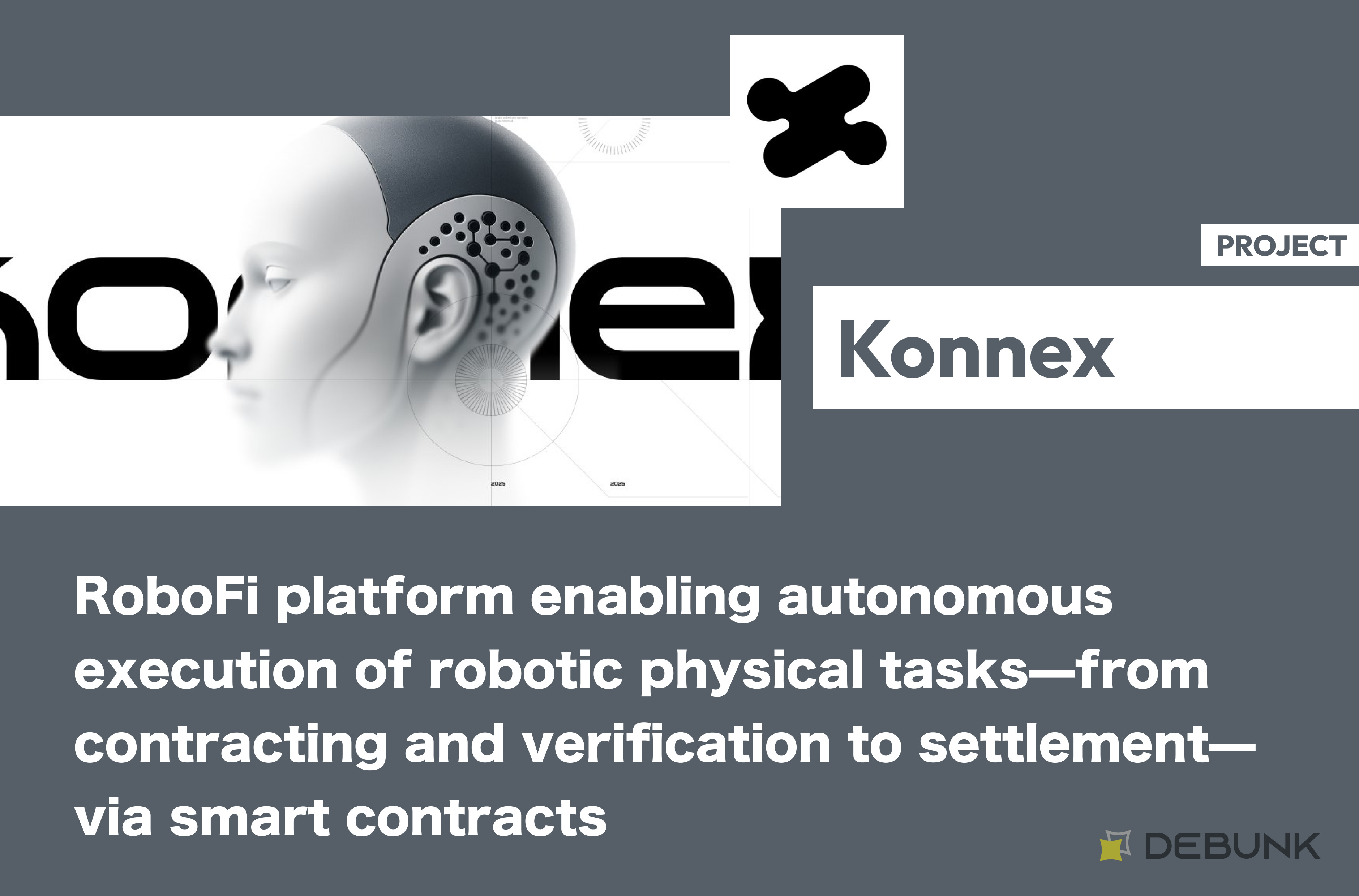 Konnex is a RoboFi platform that enables autonomous execution of physical tasks performed by robots—from contracting and verification to settlement—via smart contracts.