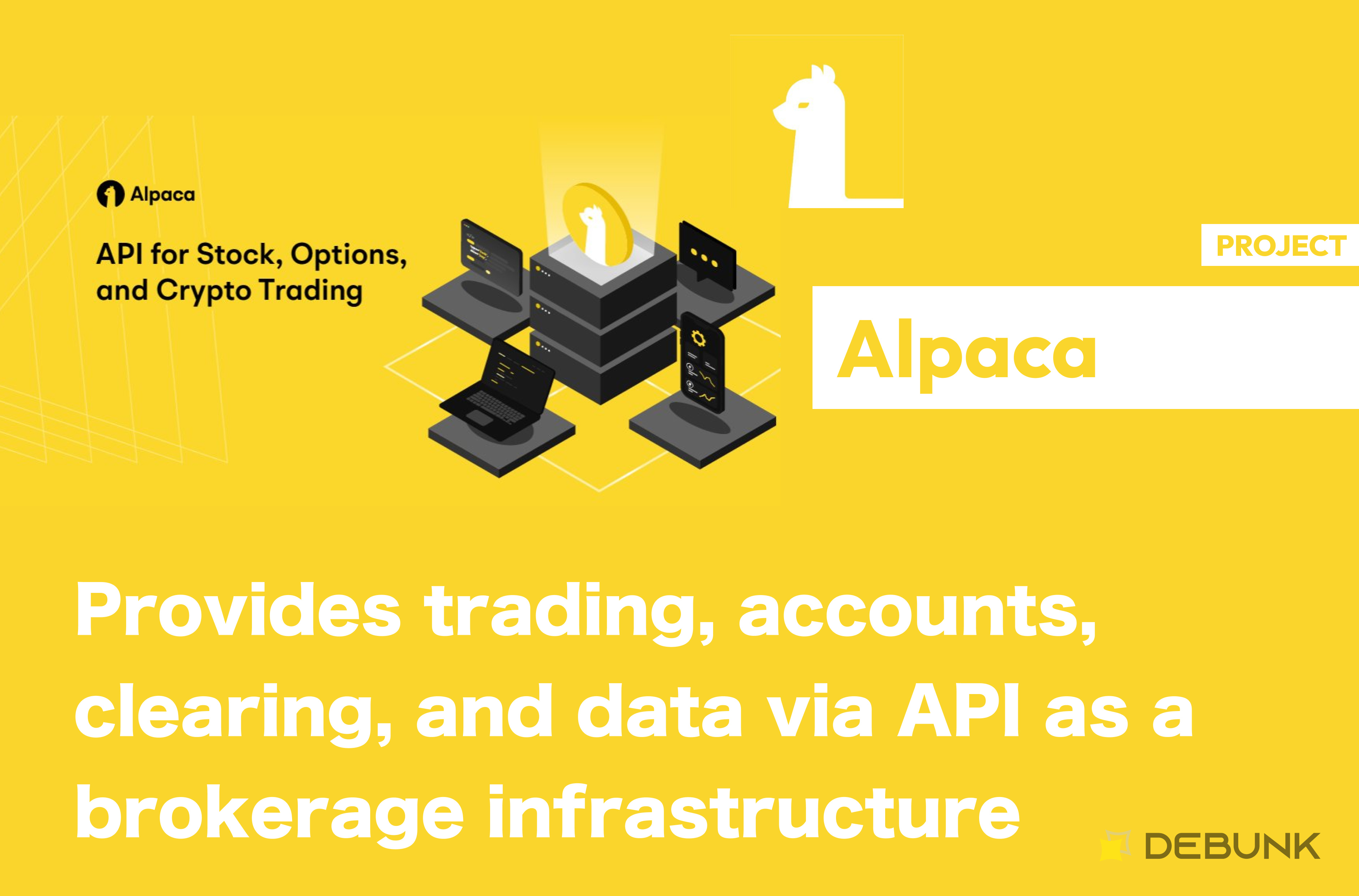 Alpaca is a fintech company designed for embedded finance, serving as an API-first brokerage infrastructure that provides trading, accounts, clearing, and data via APIs.